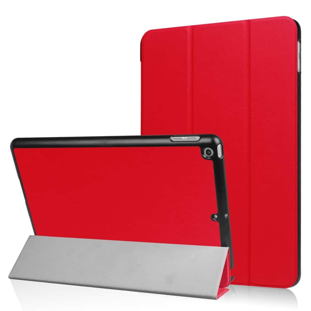 Et rødt tri-fold cover af PU læder med støttestativ og automatisk wake/sleep-system til din iPad 2017/2018 (9.7”) giver dig den perfekte kombination af god berøringsflade, beskyttelse og et stilrent design.