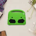 Dette grønne, børnevenlige og stødabsorberende iPadcover af miljøvenligt plastik kan nemlig også bruges som et støttestativ, som er nødvendigt, hvis du elsker at se videoer uden at skulle holde din, og med sit håndtag er den altid nem at bære rundt på.