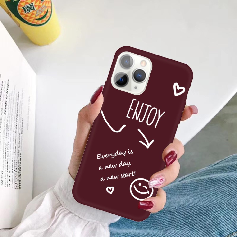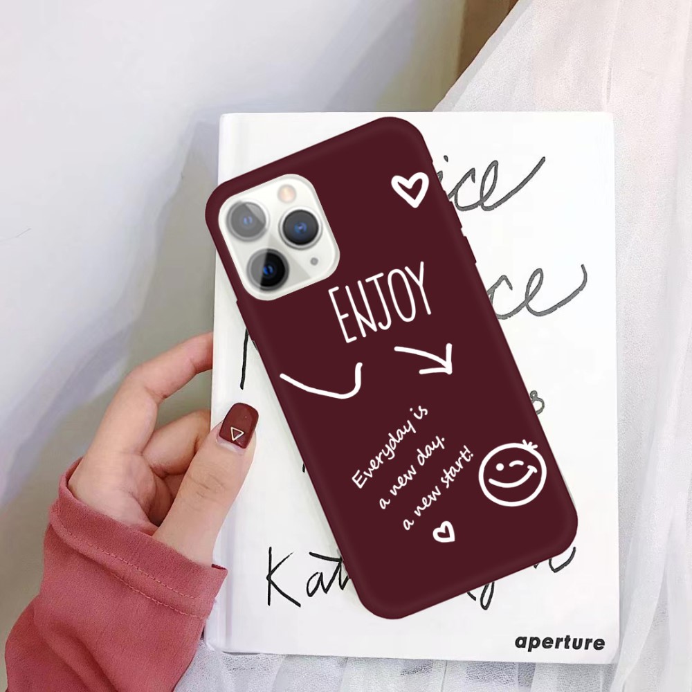 Et mørkerødt mobilcover af blødt TPU plastik med et glad citat til din iPhone 11 Pro Max giver dig den perfekte kombination af god berøringsflade, beskyttelse og et unikt design. Det flotte mobilcover er bygget til at holde og yde maksimal beskyttelse for din iPhone 11 Pro Max, der derfor kan holde sig helt fri fra skrammer på bagsiden.