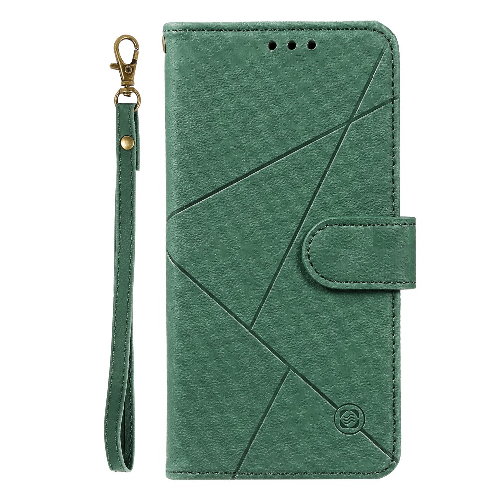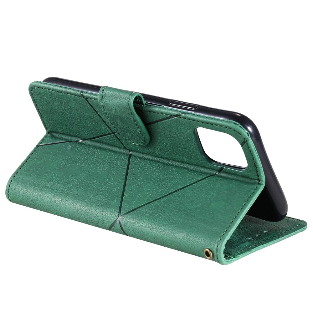 iPhone 11 Pro Max mobilcover af læder med geometrisk mønster og kortholder – Grøn