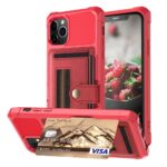 iPhone 11 Pro Max mobilcover af læder med kortholder, støttestativ og fingerrem – Rød