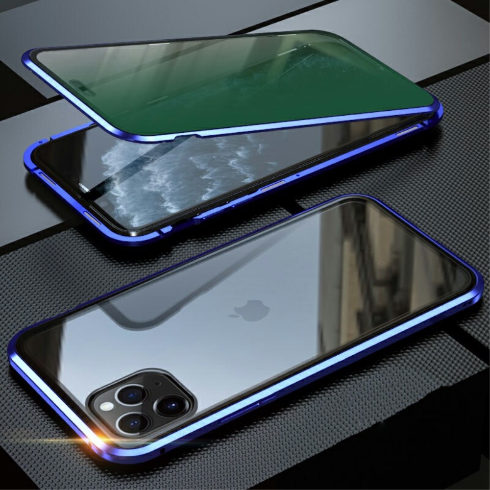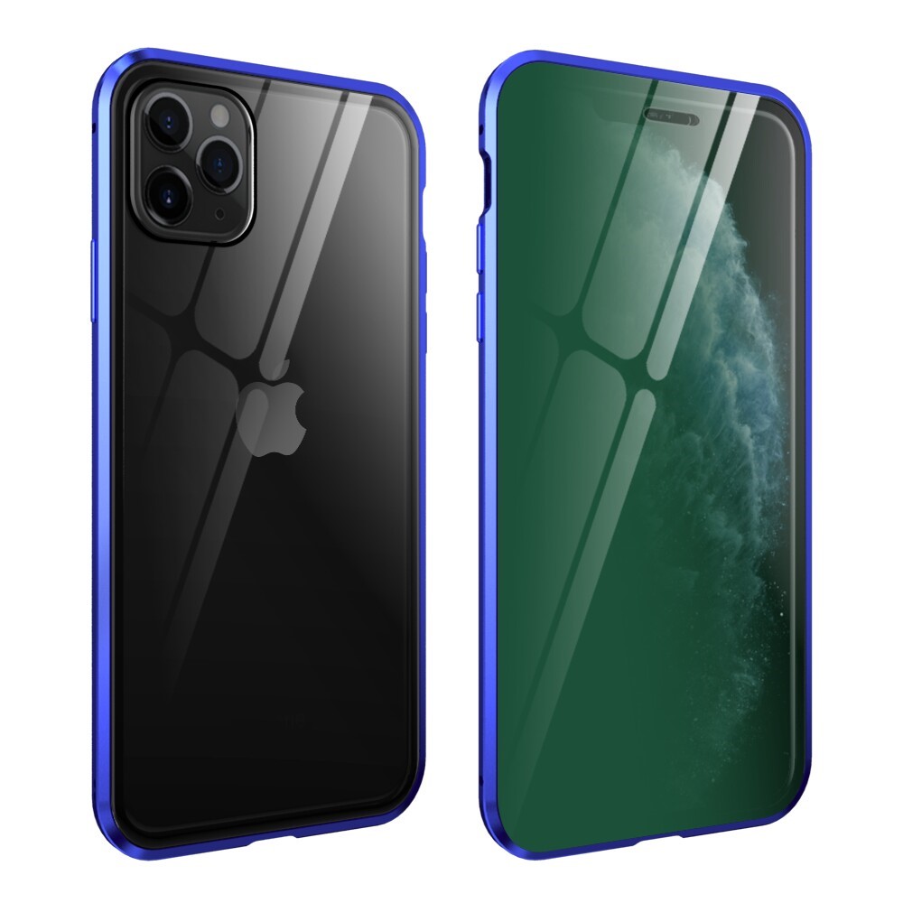 iPhone 11 Pro Max mobilcover af magnetisk metal med hærdet glas og 360 graders beskyttelse – Blå