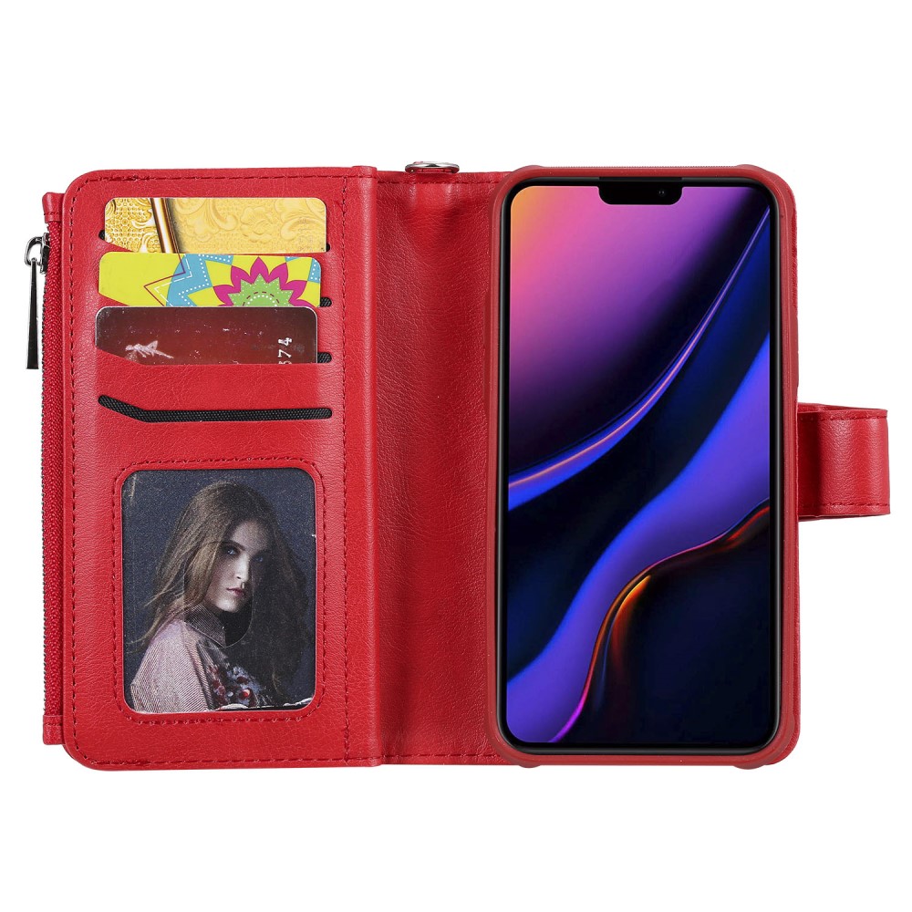 iPhone 11 Pro 2-i-1 Flipcover af læder og pung med lynlås – Rød