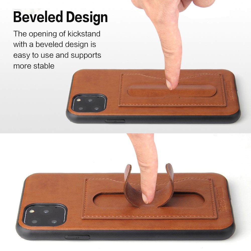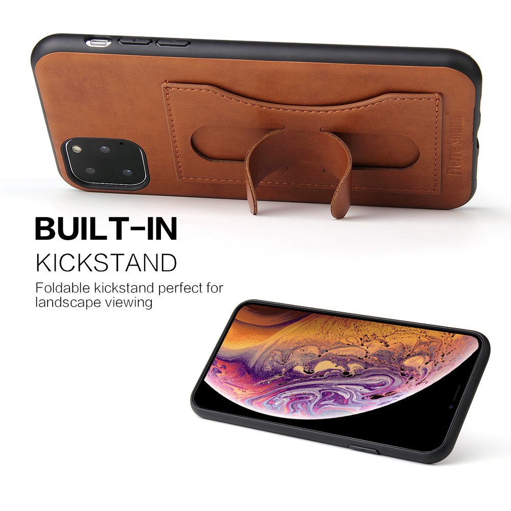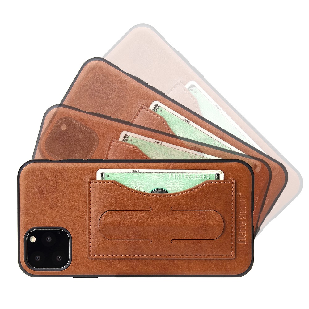 iPhone 11 Pro FIERRE SHANN bagcover af læder og kortholder – Brun