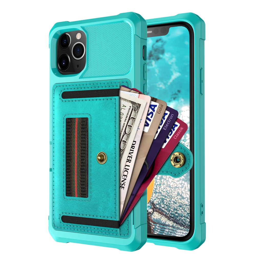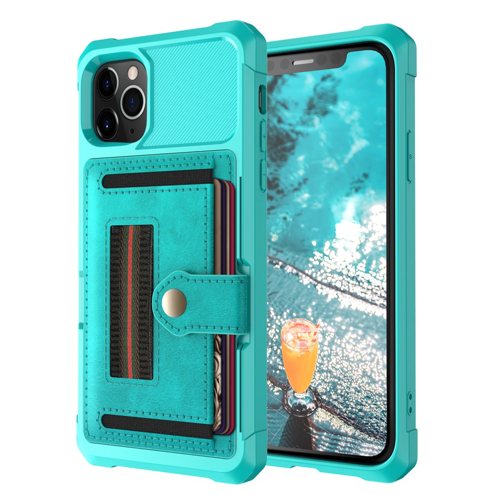 iPhone 11 Pro mobilcover med kortholder, støttestativ og fingerrem – Lyseblå