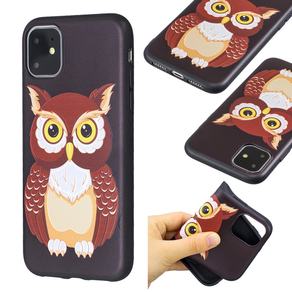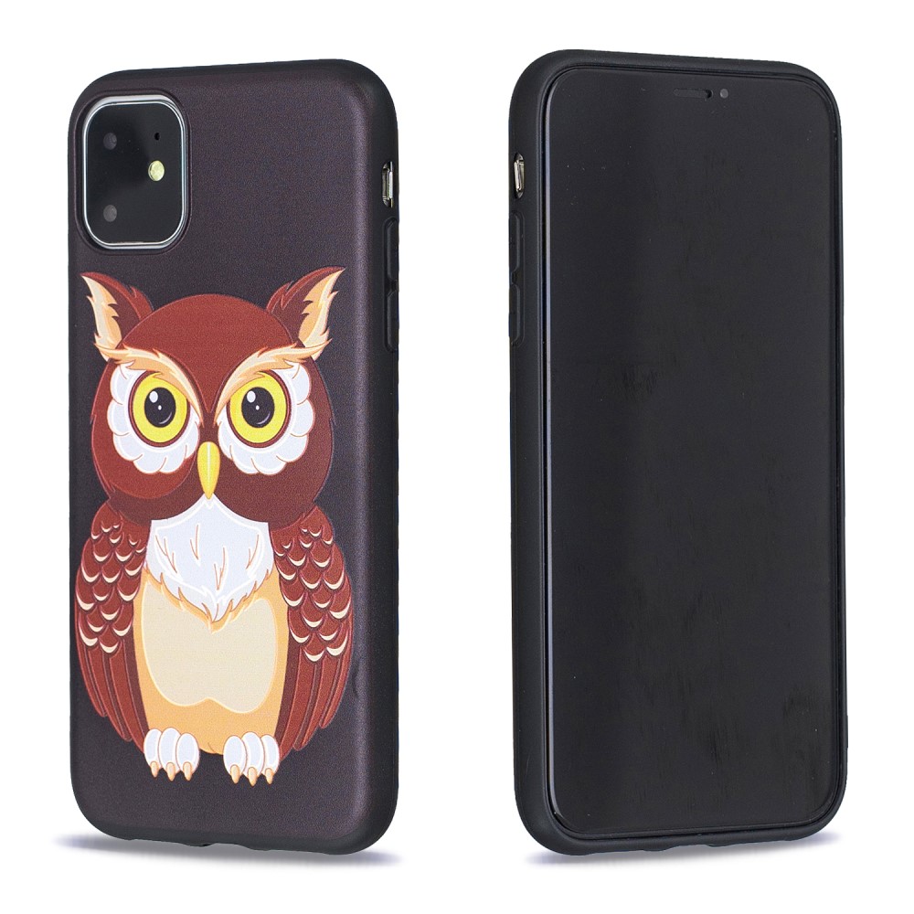 iPhone 11 bagcover af fleksibelt plastik med print – Brun Ugle