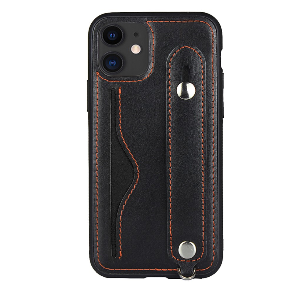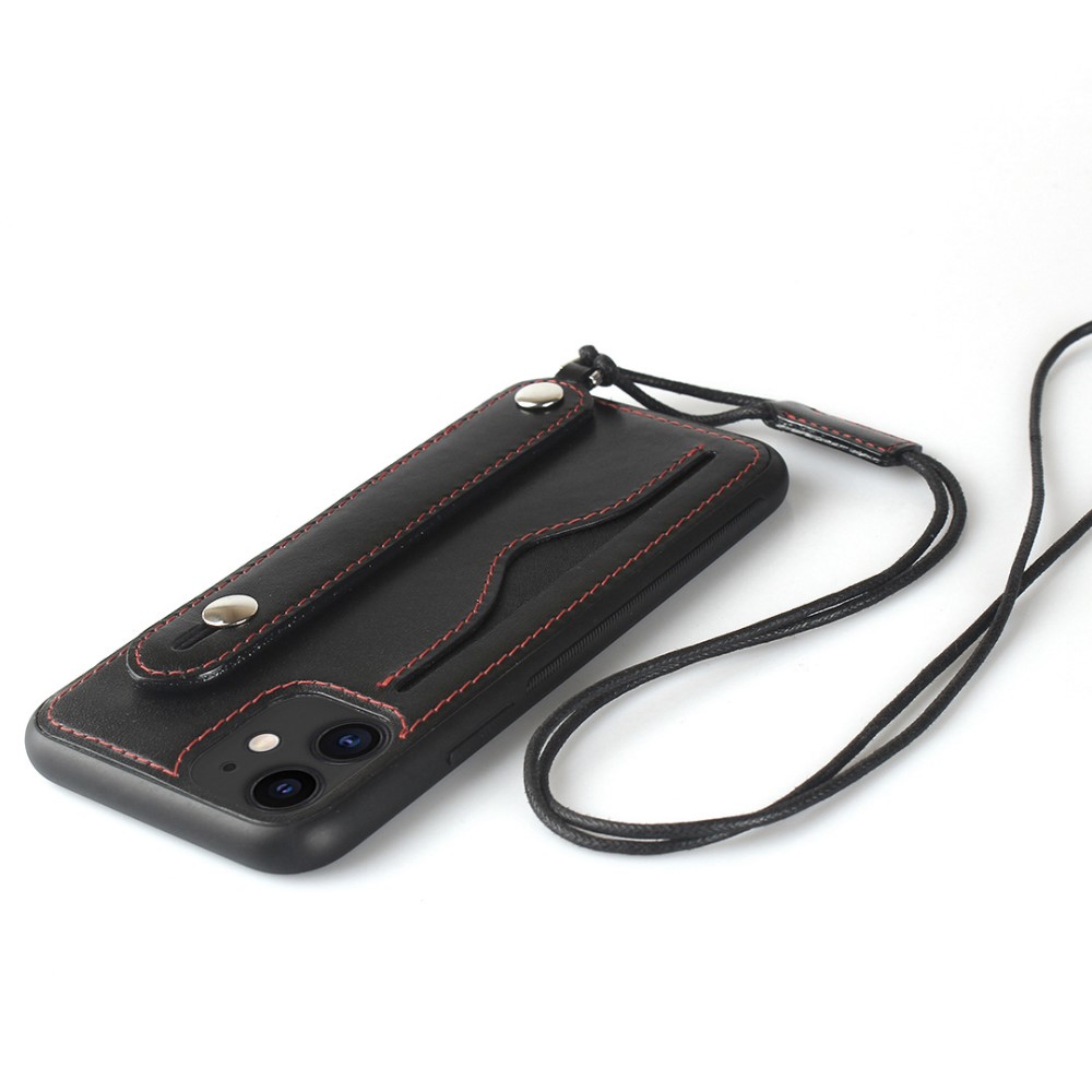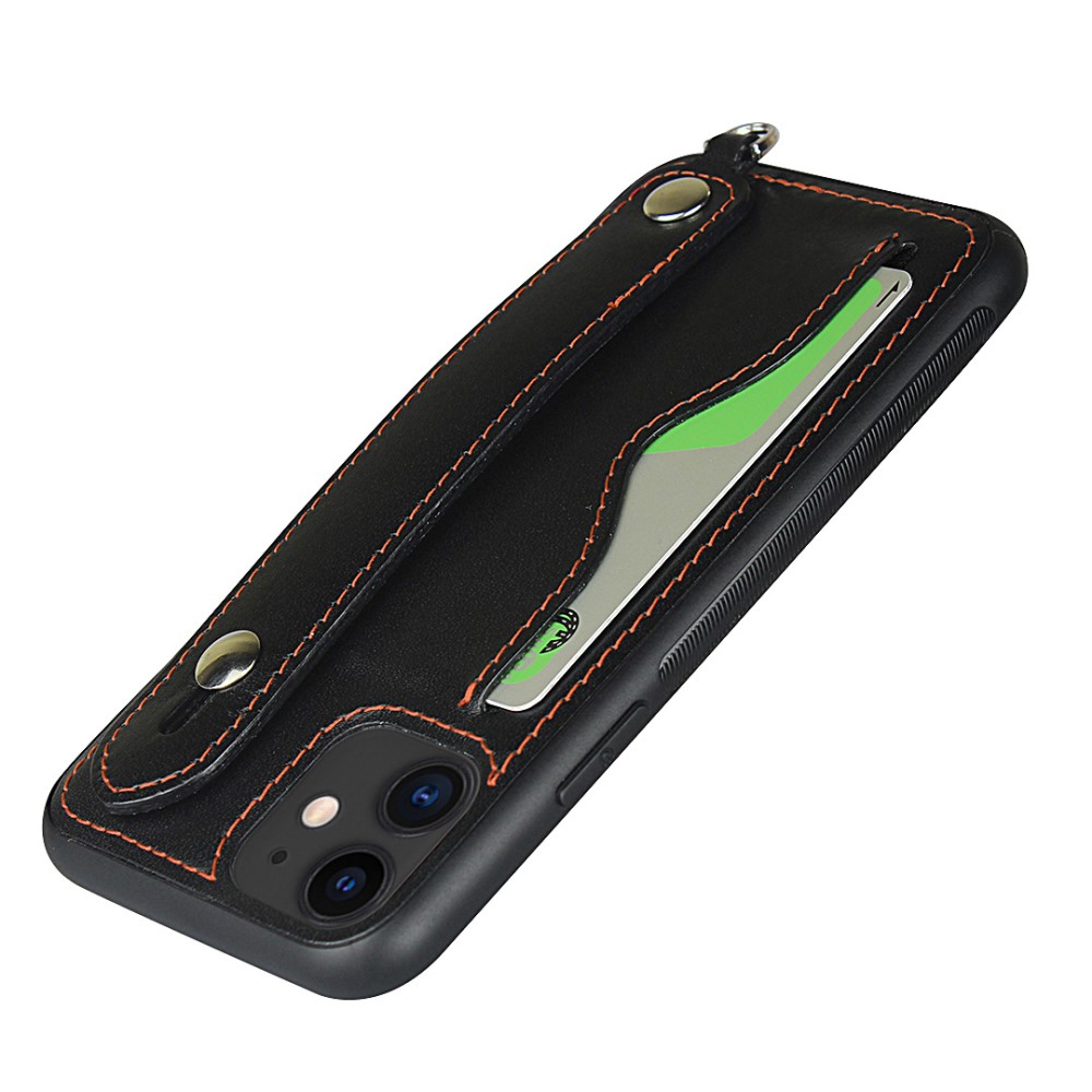 iPhone 11 bagcover af læder med kortholder og håndrem – Sort