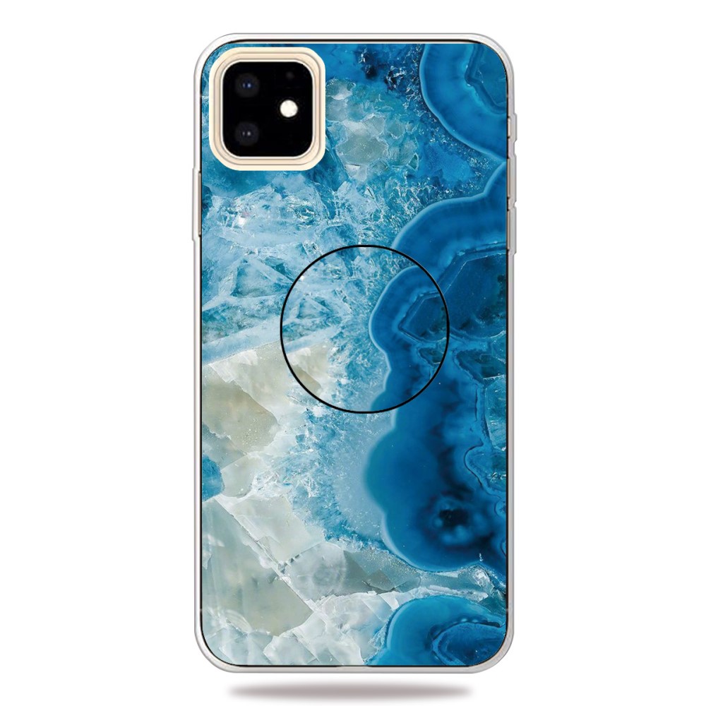 iPhone 11 bagcover med print og holder – Blå/Hvid
