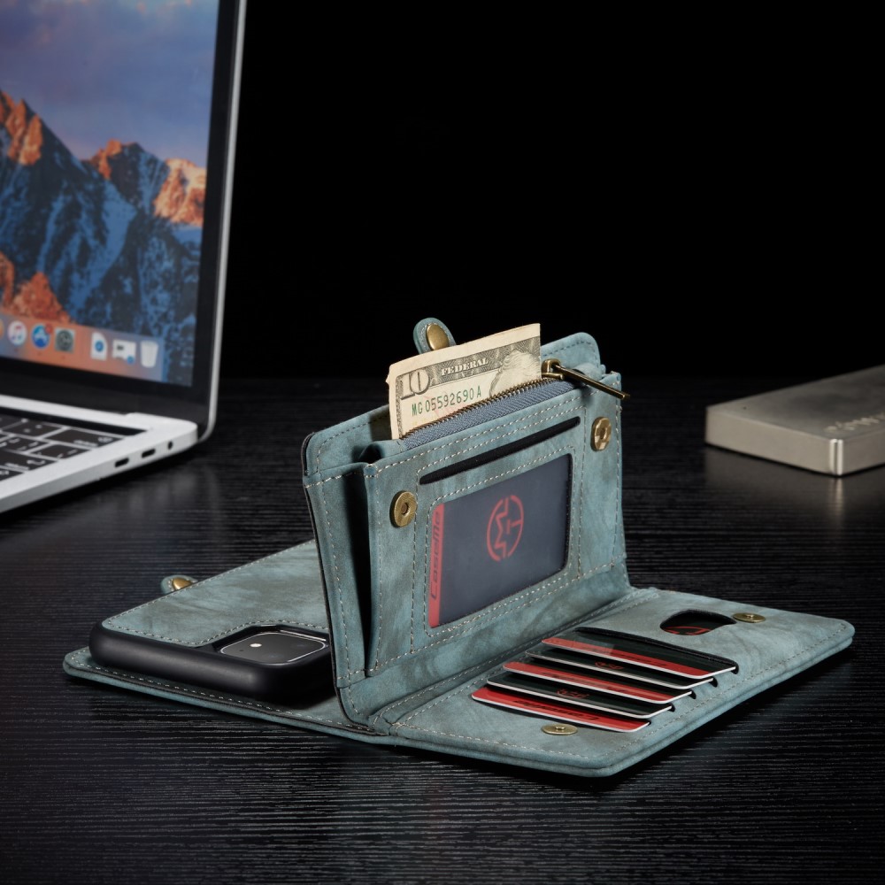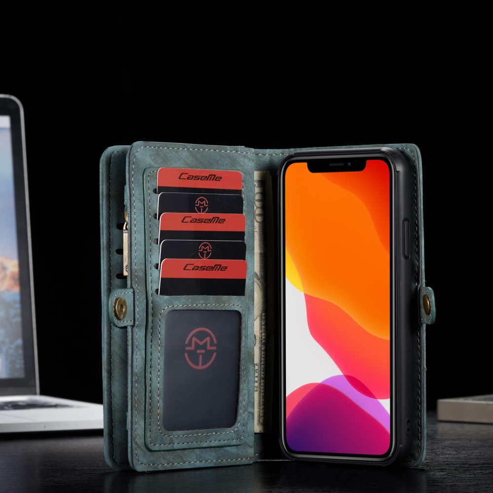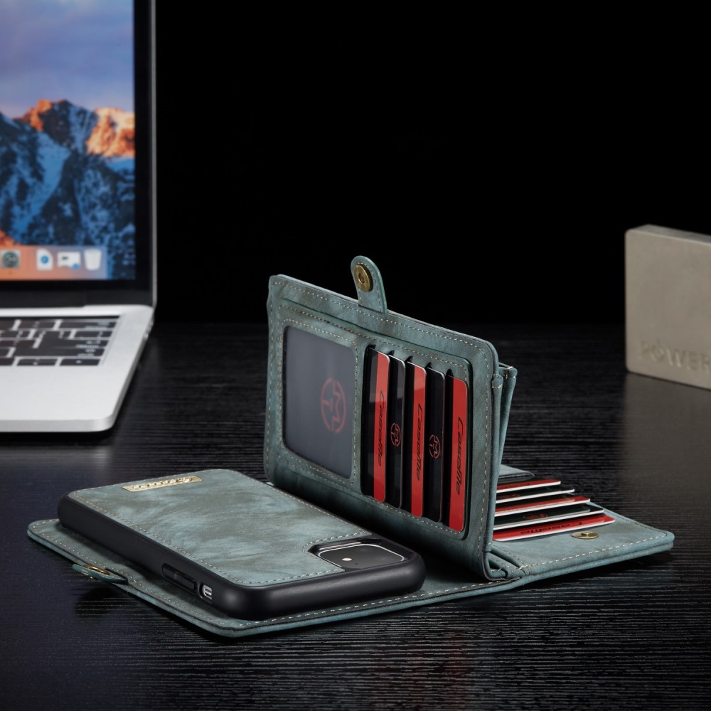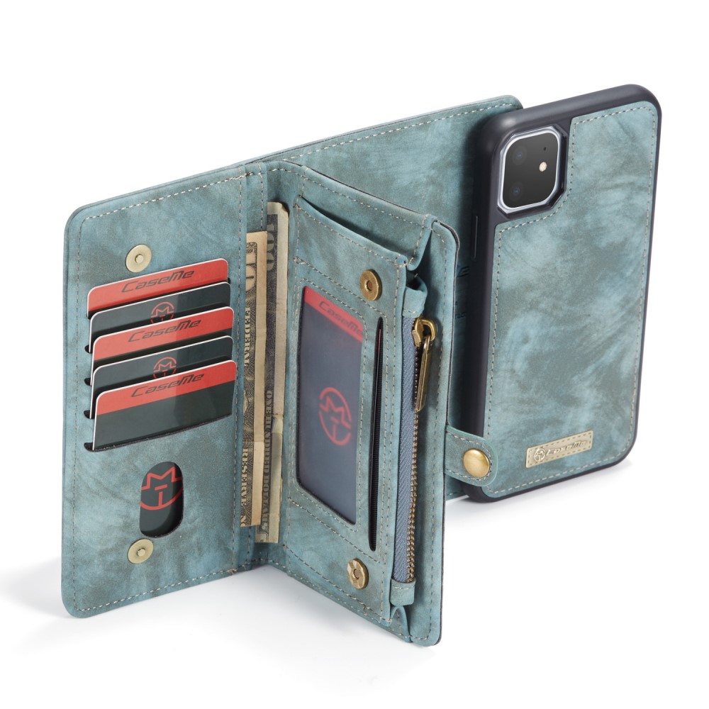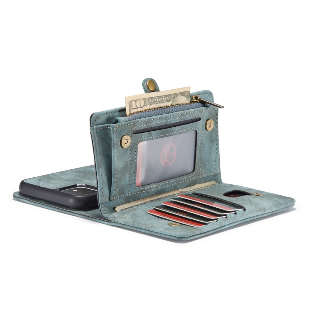 iPhone 11 CASEME Flipcover og pung af split læder – Blå