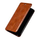 Et brunt Crazy Horse flipcover af PU læder giver dig den perfekte kombination af god berøringsflade, beskyttelse og et stilrent design til din iPhone.