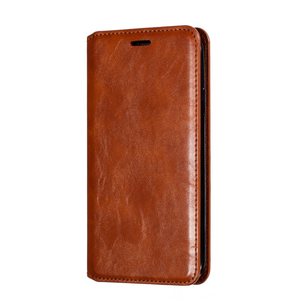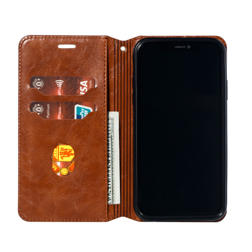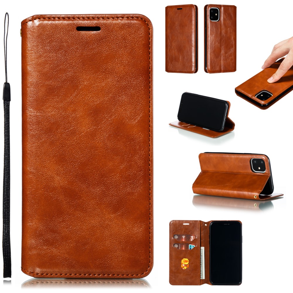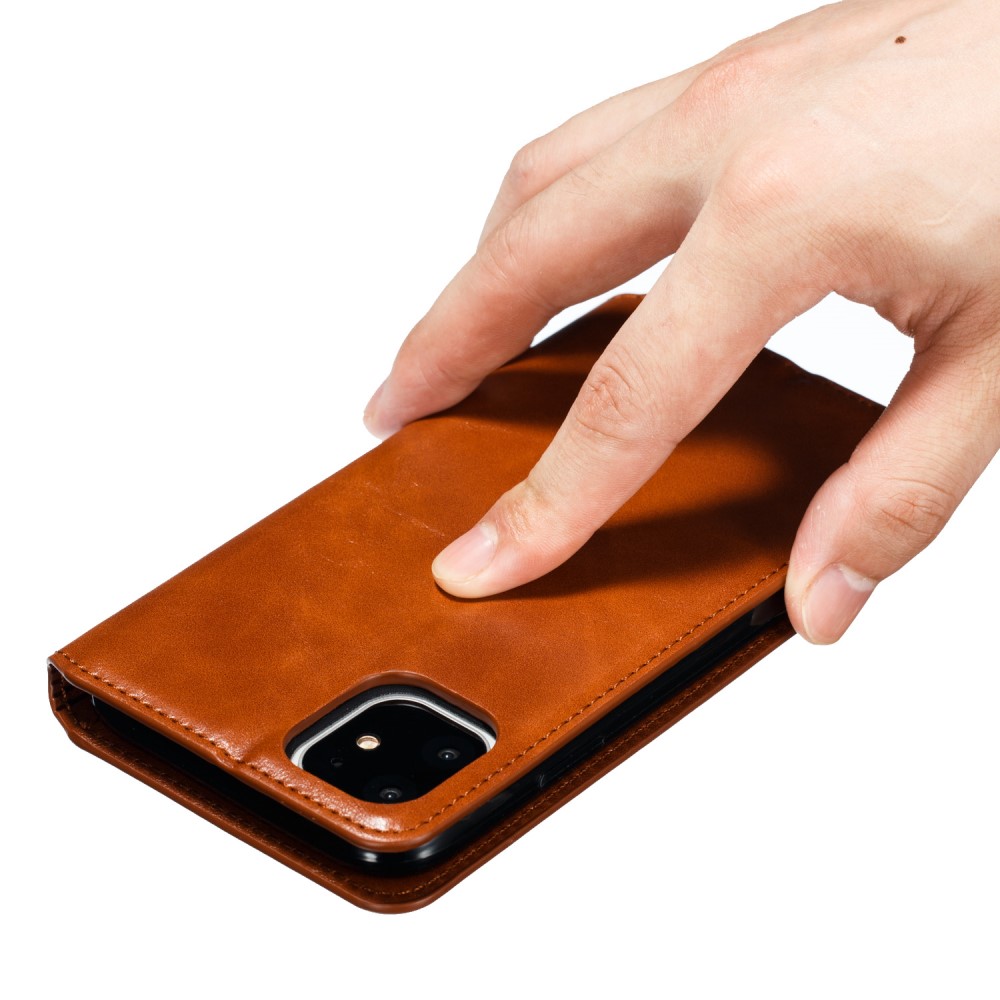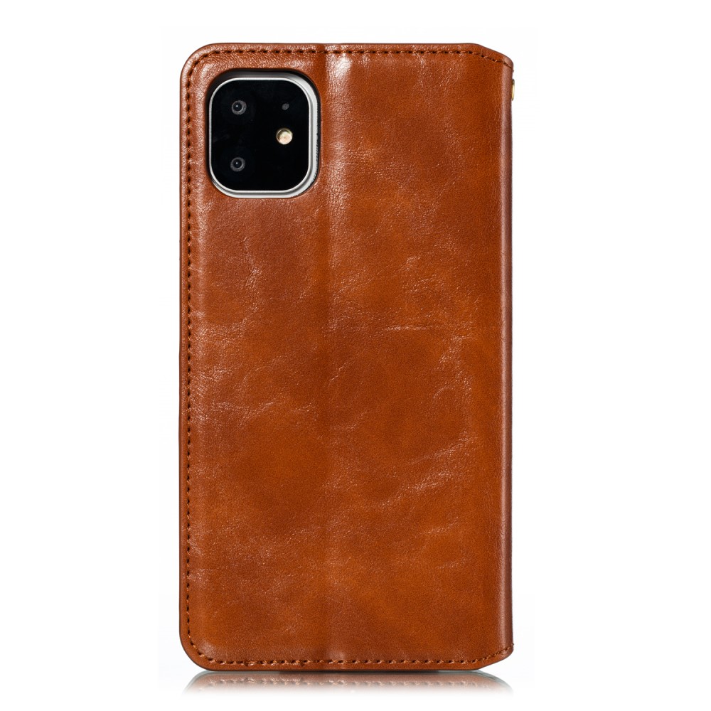 iPhone 11 Crazy Horse Flipcover af læder med magnetisk lukkesystem og kortholder – Brun