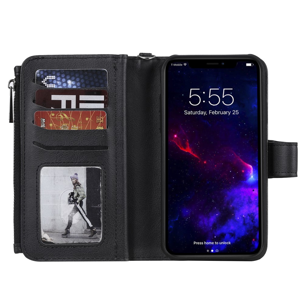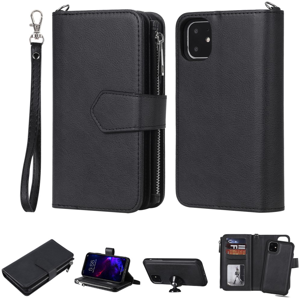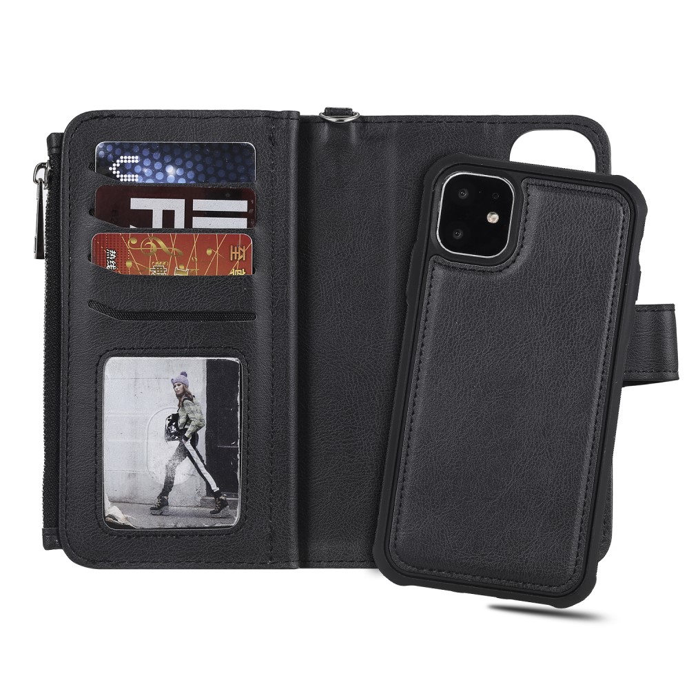 iPhone 11 Flipcover 2-i-1 af læder og pung med lynlås – Sort