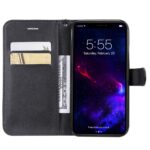 Mobilcoveret af PU læder er bygget til at holde og yde maksimal beskyttelse for din iPhone 11, der derfor kan se sig helt fri fra skrammer. Samtidig byder mobilcoveret på et lækkert, stilrent design, der ikke bare er en fryd for øjnene, men som også er praktisk god, da den kan bruges som pung. Inde i mobilcoveret finder du nemlig plads til dine kontanter og to kortholdere, hvilket sikrer dig, at du kan samle dine vigtigste kort sammen med din telefon.