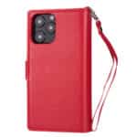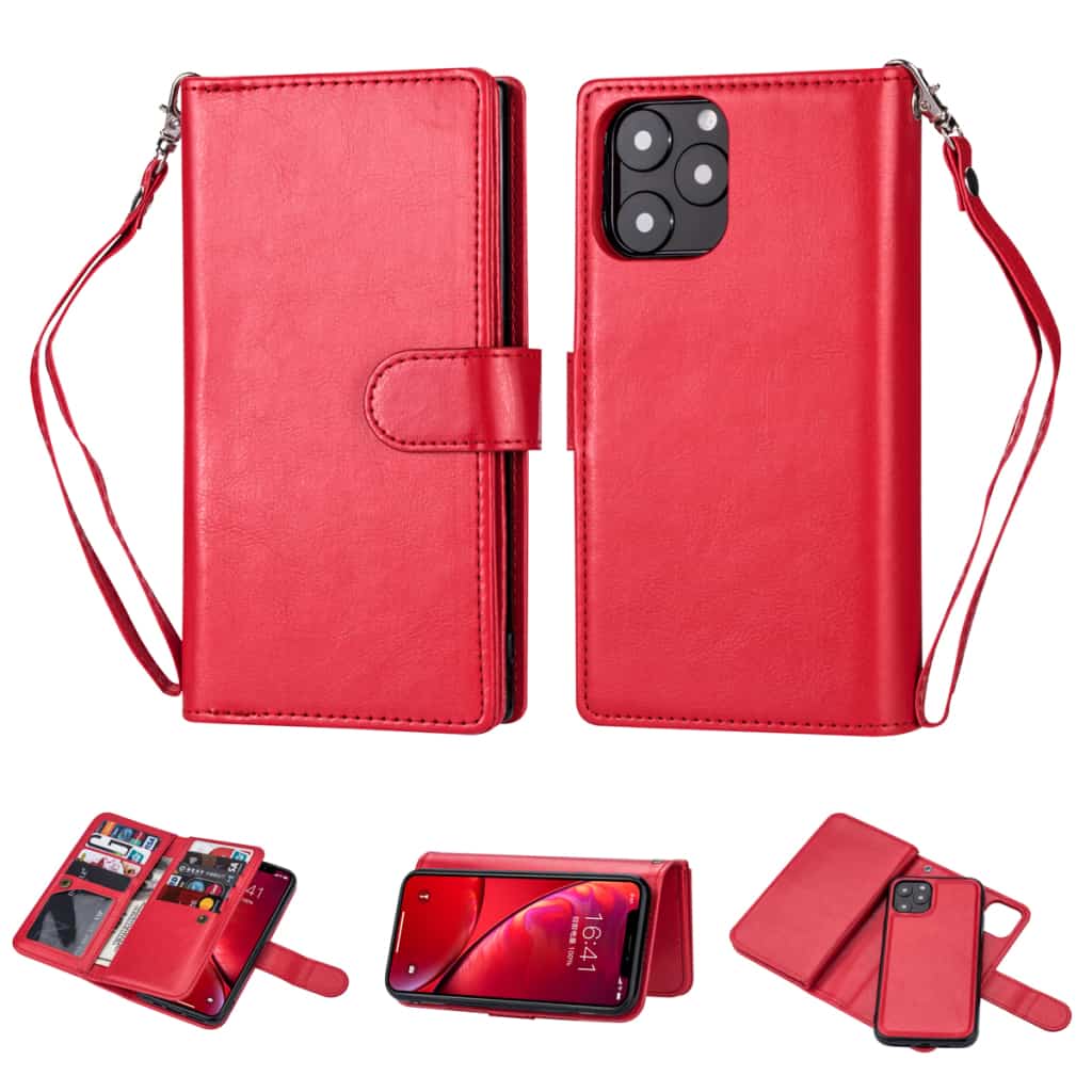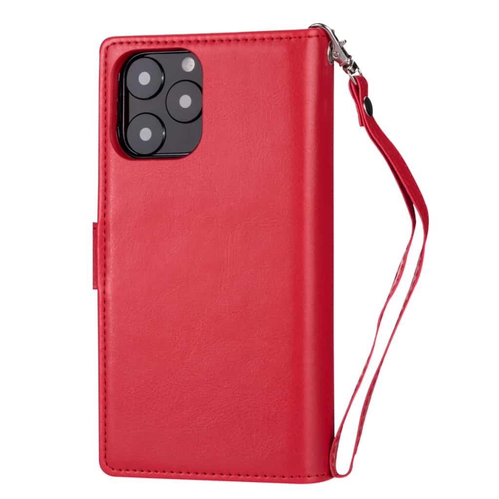 iPhone 11 Flipcover af læder med ni kortholdere og håndrem – Rød