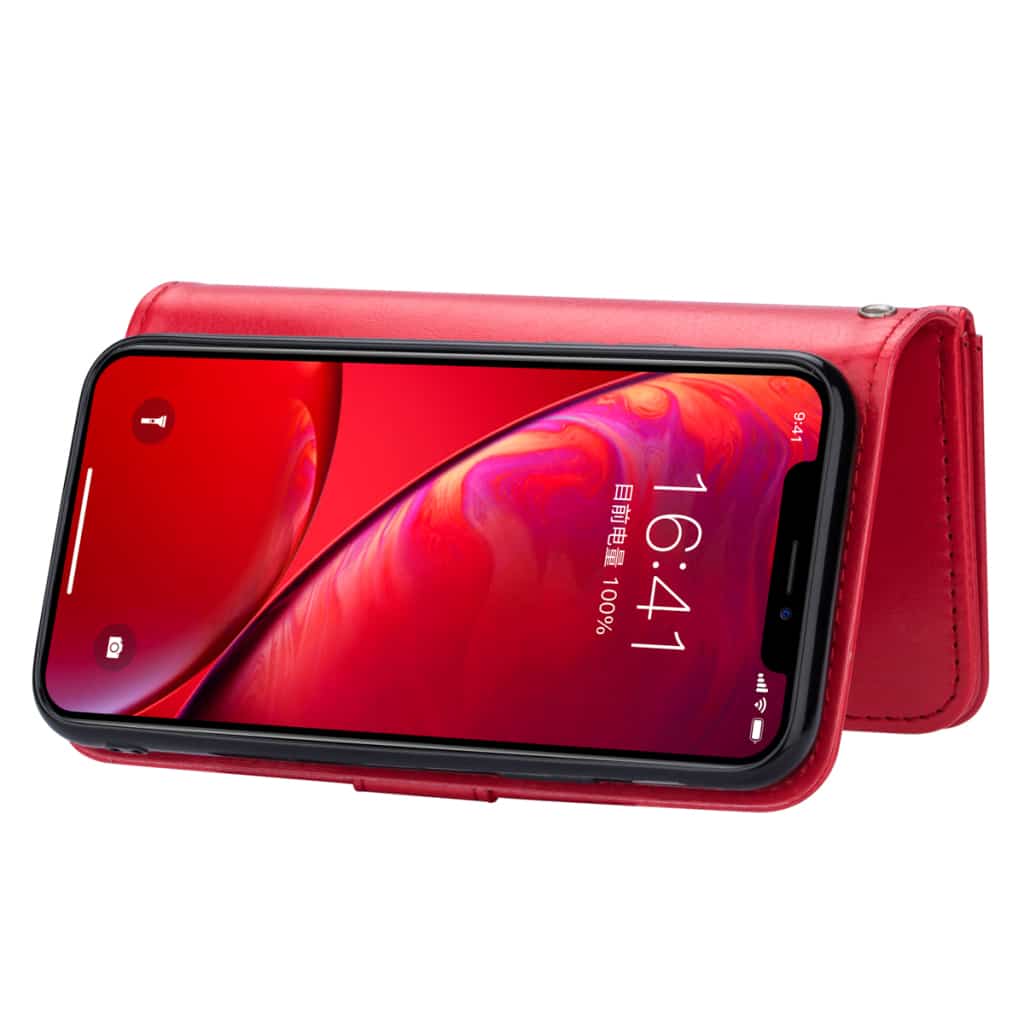 Dette iPhone 11 mobilcover af PU læder er samtidig så godt designet, at det selvfølgelig også kan bruges som et støttestativ for din telefon, ligesom der også følger en lækker håndrem med, som gør det endnu nemmere for dig at bære rundt på din iPhone 11 med dit nye, røde mobilcover af PU læder med hele 9 kortholdere.