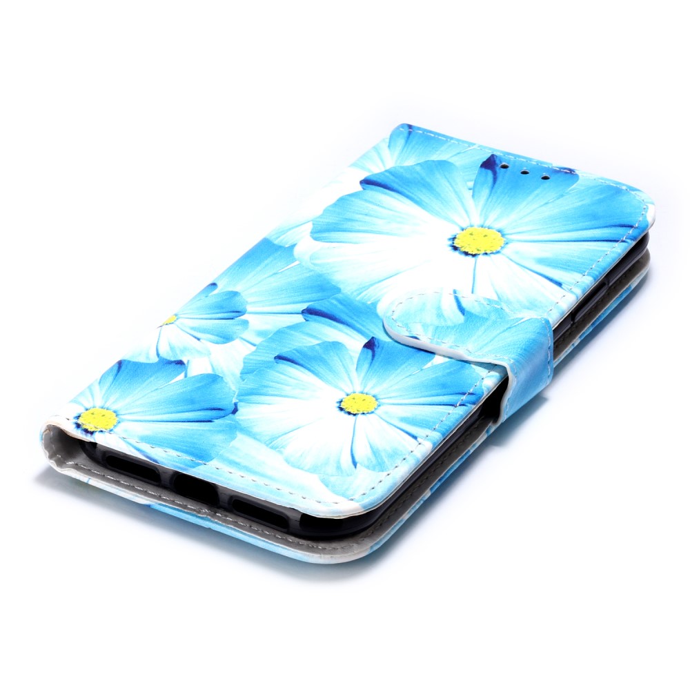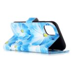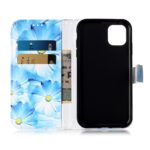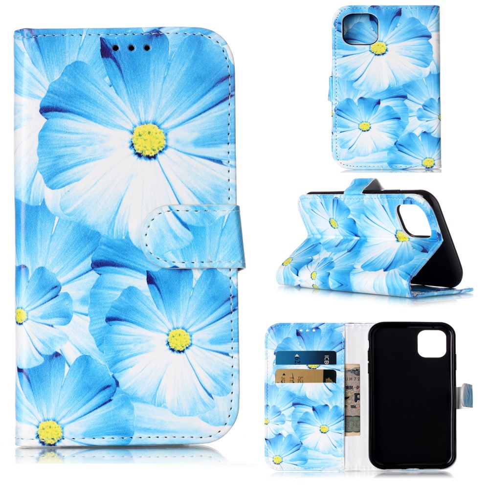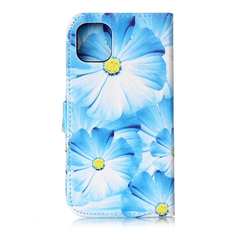 iPhone 11 Flipcover af læder med print og kortholder – Blå blomster
