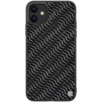 Et sølv og sort, hybridt mobilcover af PU læder, tekstil og TPU plastik til din iPhone 11 giver dig den perfekte kombination af god berøringsflade, beskyttelse og et stilrent design.