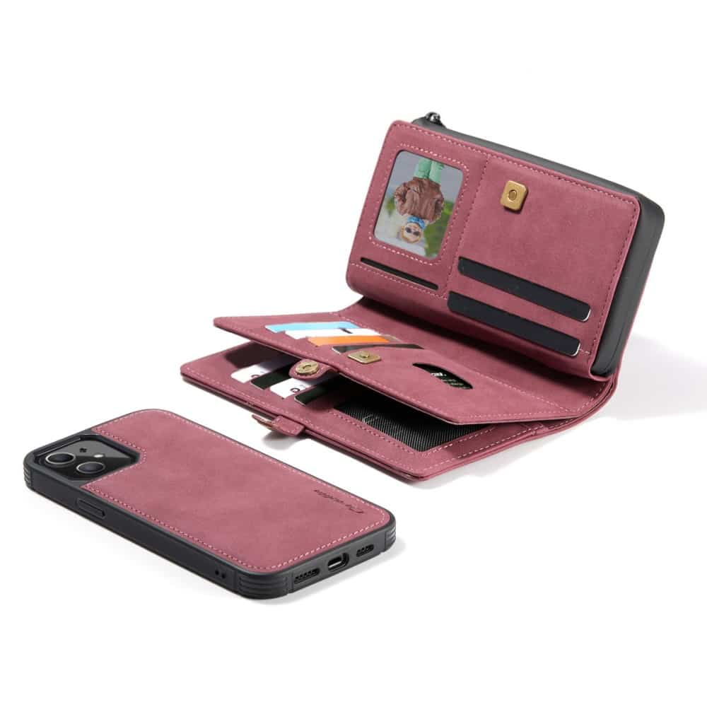 iPhone 12 mini 3-i-1 cover i mat PU-læder – Rød