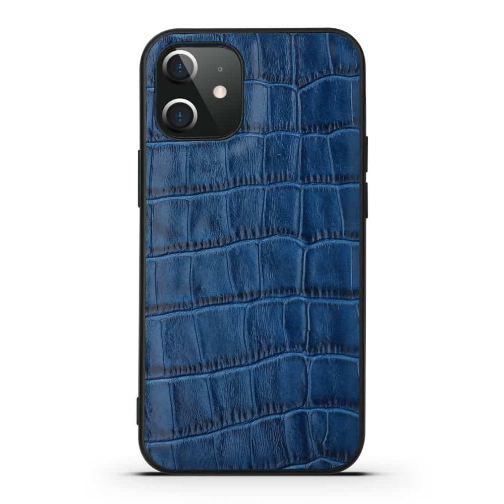 iPhone 12 mini bagcover i ægte læder med krokodilleskind tekstur – Blå