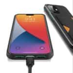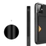Bagsiden af coveret er beklædt med PU-læder som er yderst slidstærk og sikrer dig et godt greb på din iPhone 12. Rammen rundt om telefonen er lavet i stødabsorberende TPU-plastik, og der er beskyttelse over knapperne, så de ikke bliver udsat for skidt.