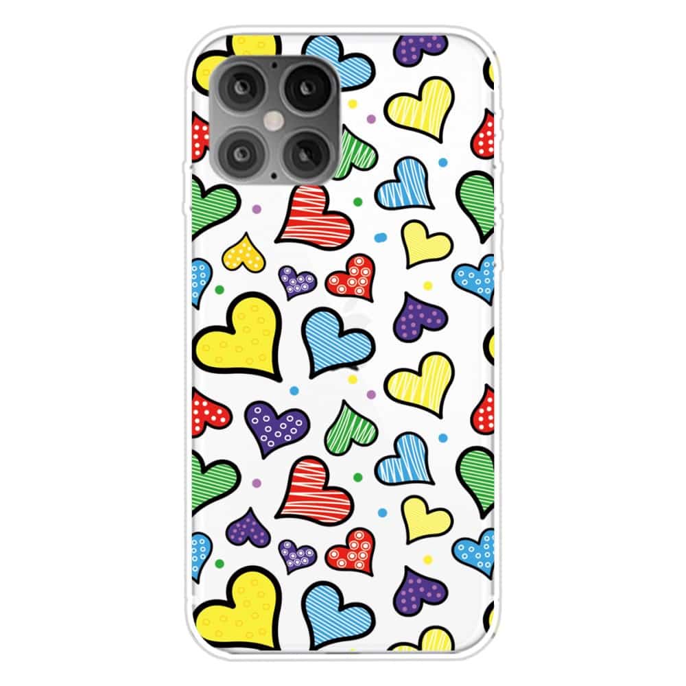 iPhone 12 mini fleksibelt cover med print – Gennemsigtig m/farverige hjerter