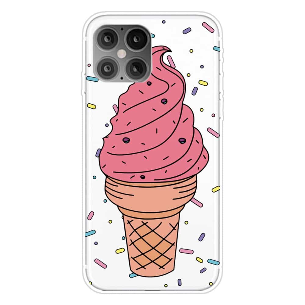 iPhone 12 mini fleksibelt cover med print – Gennemsigtig m/lyserød isvaffel