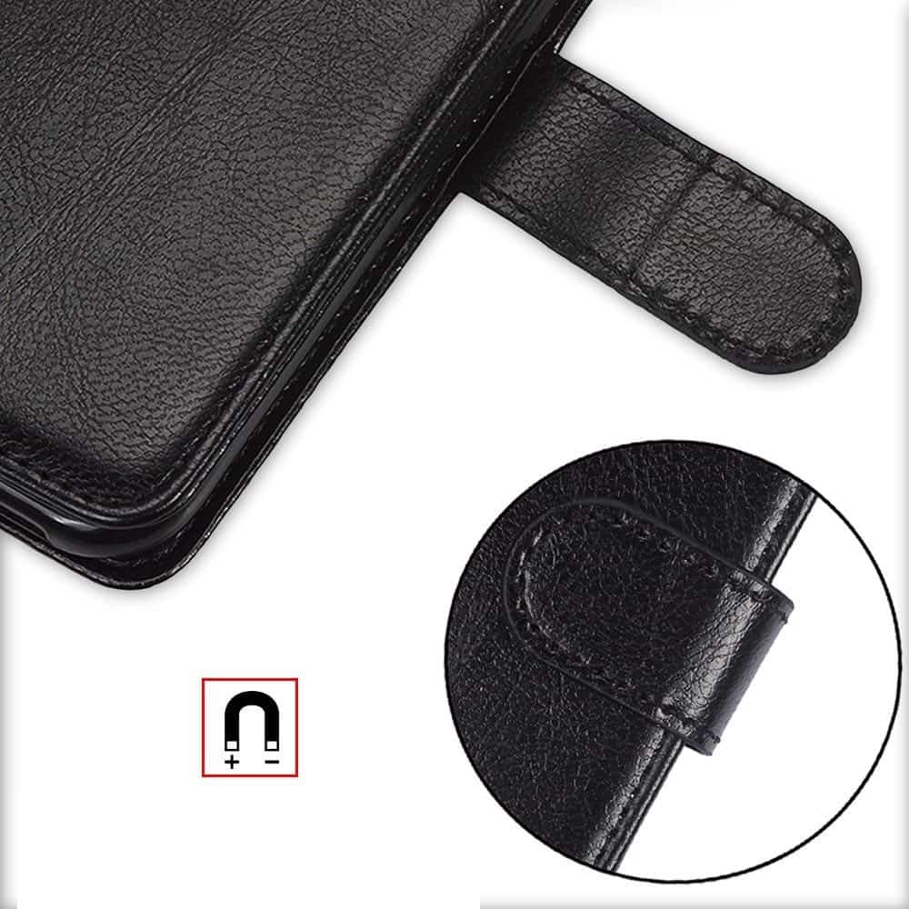 Coveret er lavet i slidstærkt PU-læder og lukkes magnetisk. Det er stødabsorberende og beskytter din iPhone 360°. Som en ekstra feature kan dette cover bruges som støtte til din telefon, hvis du fx vil se film.