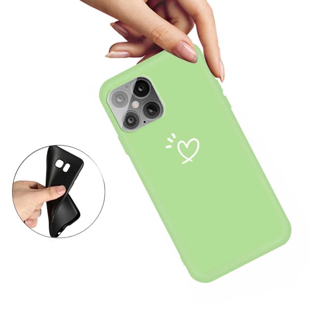 iPhone 12 mini stødabsorberende bagcover i fleksibelt TPU-plastik – Grøn m/hjerte