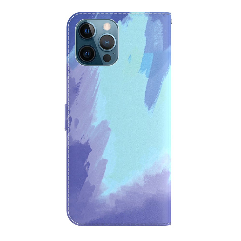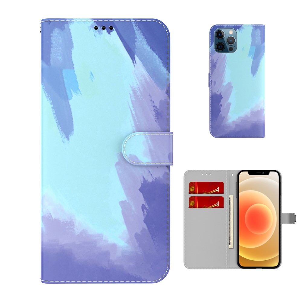 iPhone 12 Pro max Akvarel flip cover i PU-læder – Mørke Blå
