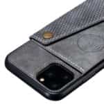 Coveret har flere smarte features, som du bliver rigtig glad for. Først og fremmest er der kortholderen, hvor der er plads til 4 kort. Den lukkes forsvarligt med to trykknapper, så du ikke risikerer at miste dine kort, og den kan også bruges som støtte til din iPhone, når du vil se videoer. I kortholderen er der også indsyet en magnet, så du kan bruge magnetiske smartphoneholdere uden at skulle pille coveret af eller købe ekstraudstyr.