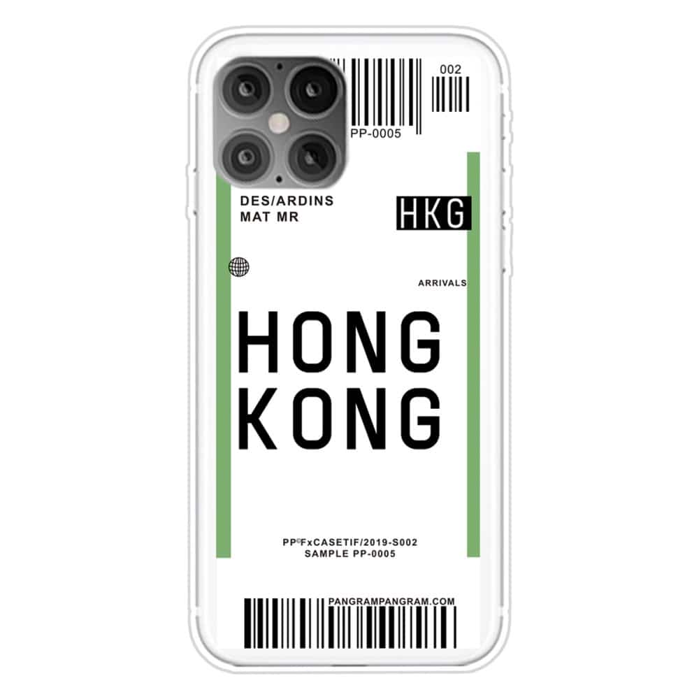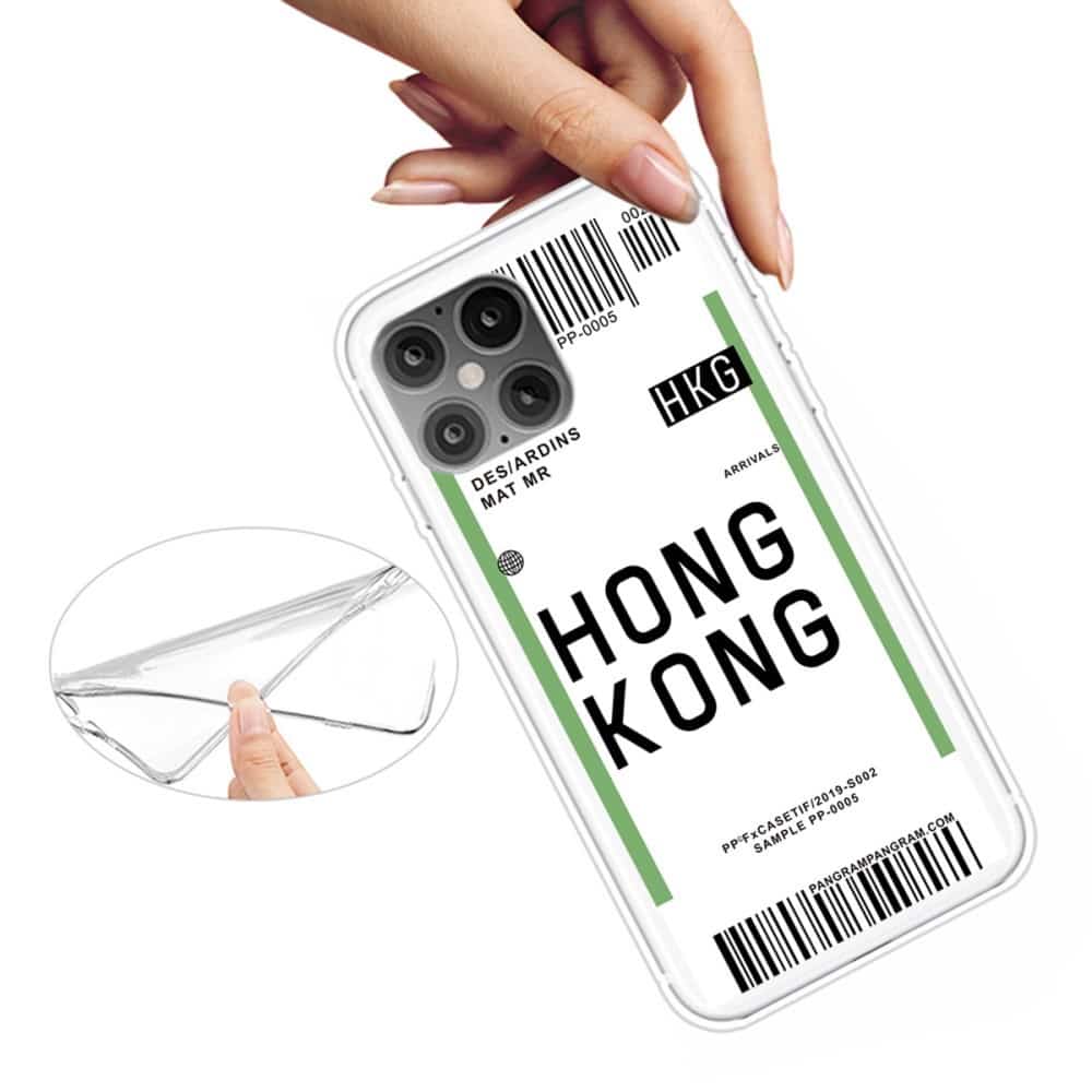 iPhone 12 / 12 Pro fleksibelt cover med print – Gennemsigtig m/boardingpas- Hong Kong