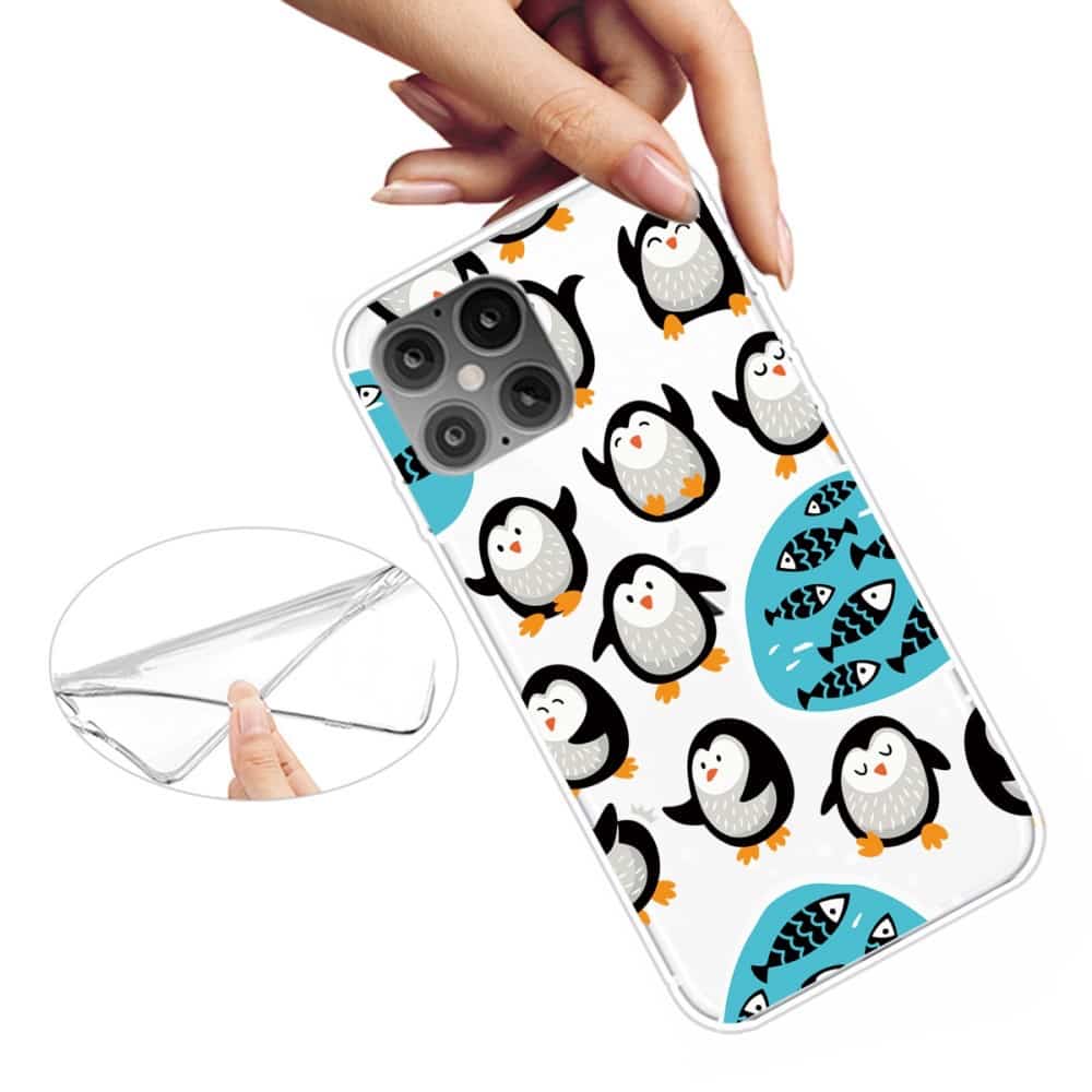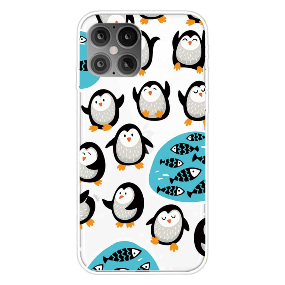 iPhone 12 / 12 Pro fleksibelt cover med print – Gennemsigtig m/pingviner