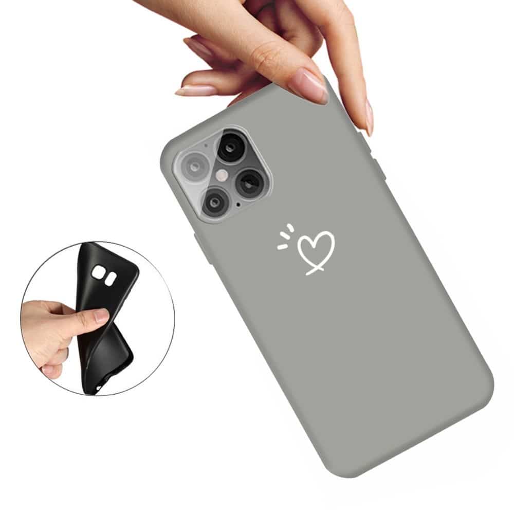iPhone 12 / 12 Pro stødabsorberende bagcover i fleksibelt TPU-plastik – Grå m/hjerte