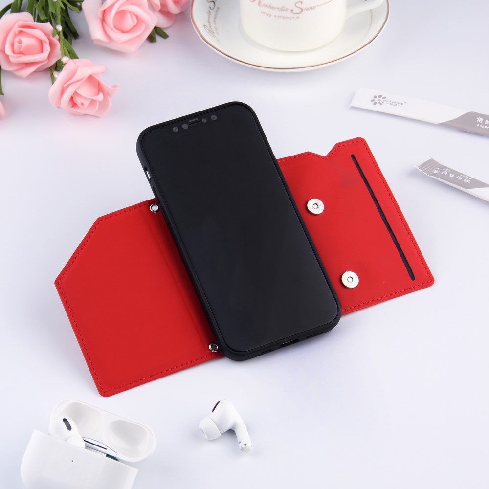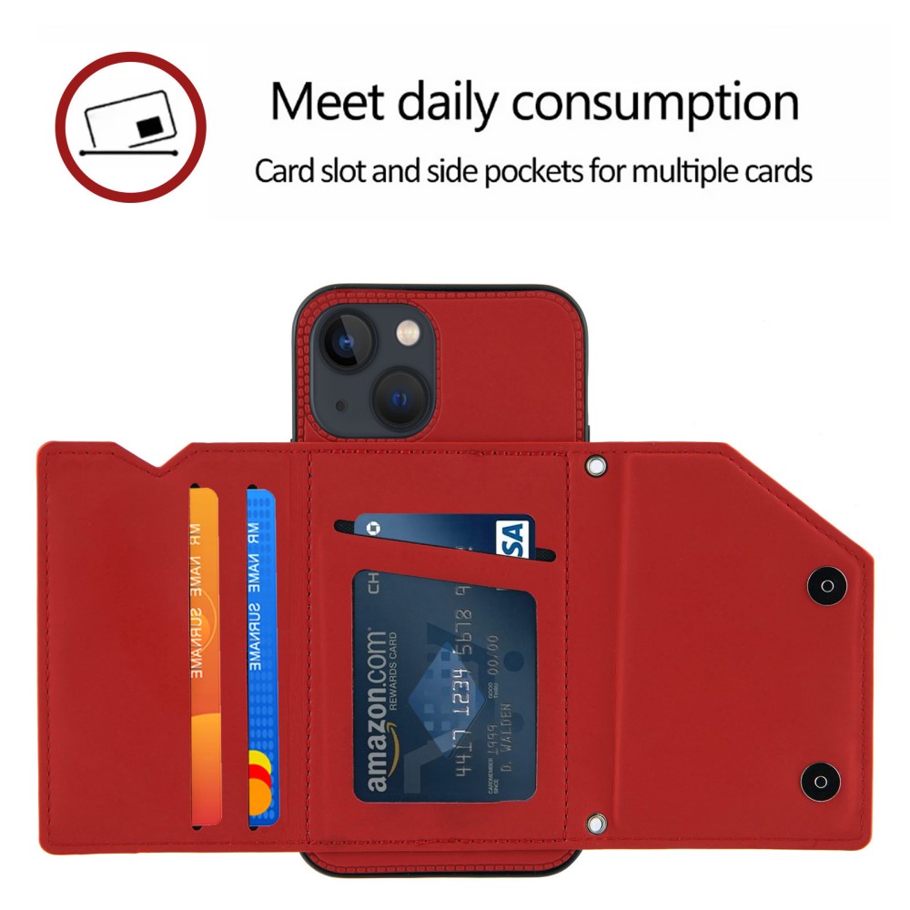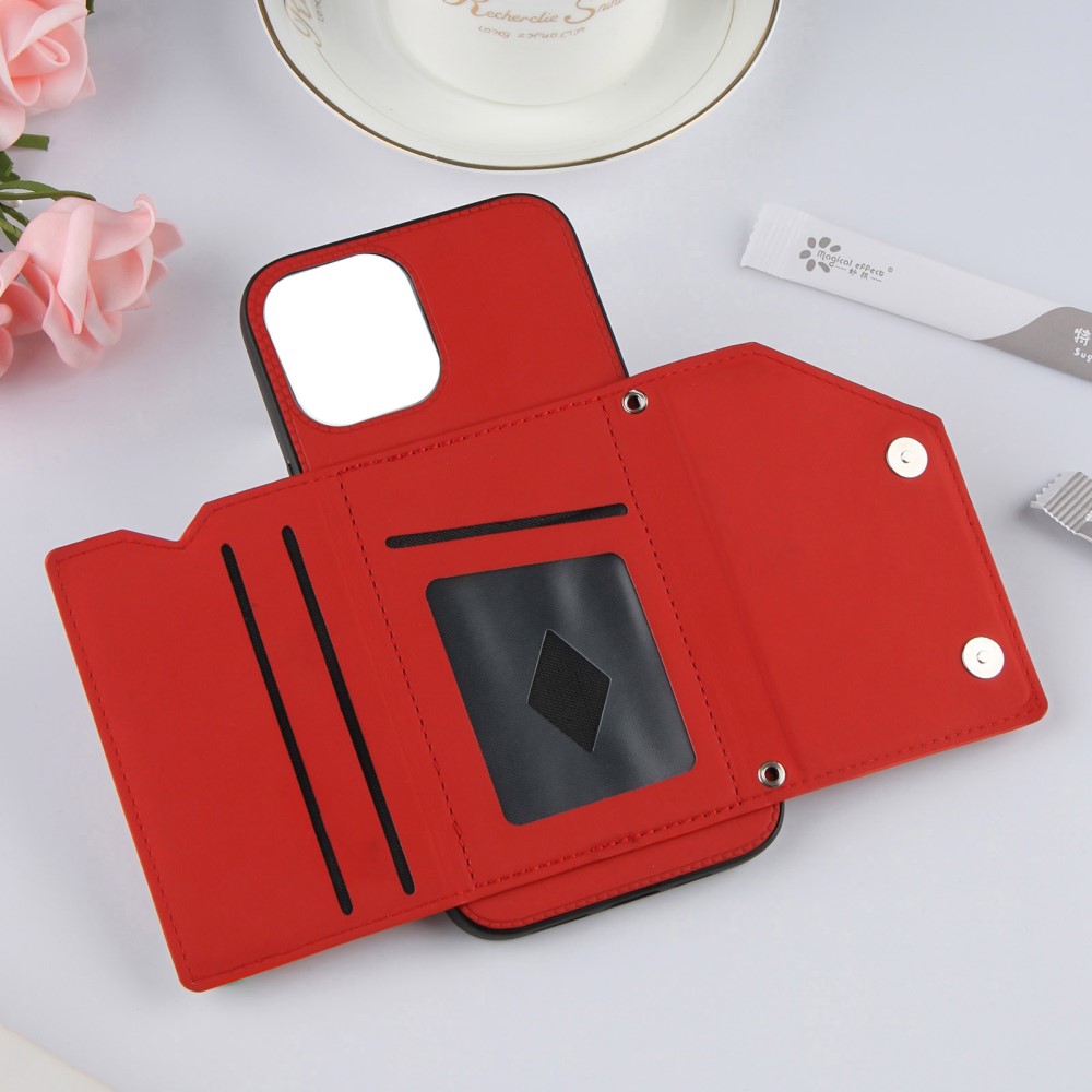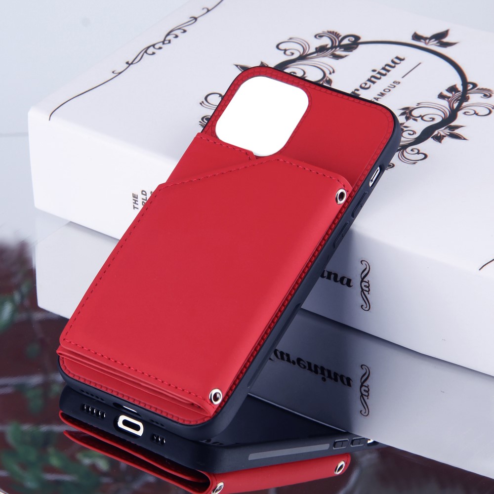 iPhone 13 cover i Læder med kortholder – Rød