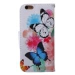 Et mobilcover af PU læder med print af farverige blomster og sommerfugle giver dig den perfekte kombination af god berøringsflade, beskyttelse og et unikt design til din iPhone 6 / 6S.