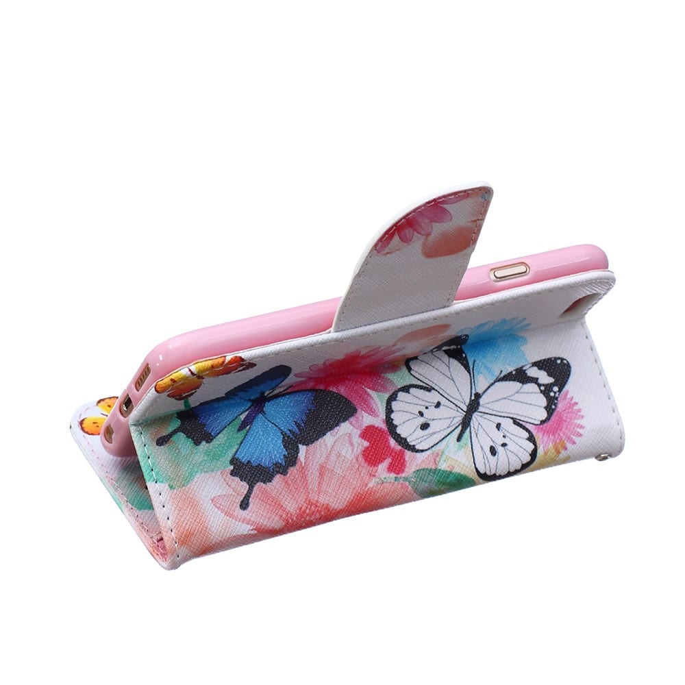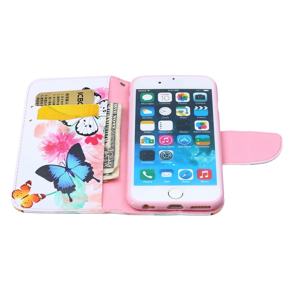 iPhone 6 / 6S mobilcover med print og kortholder – Farverige Blomster og Sommerfugle