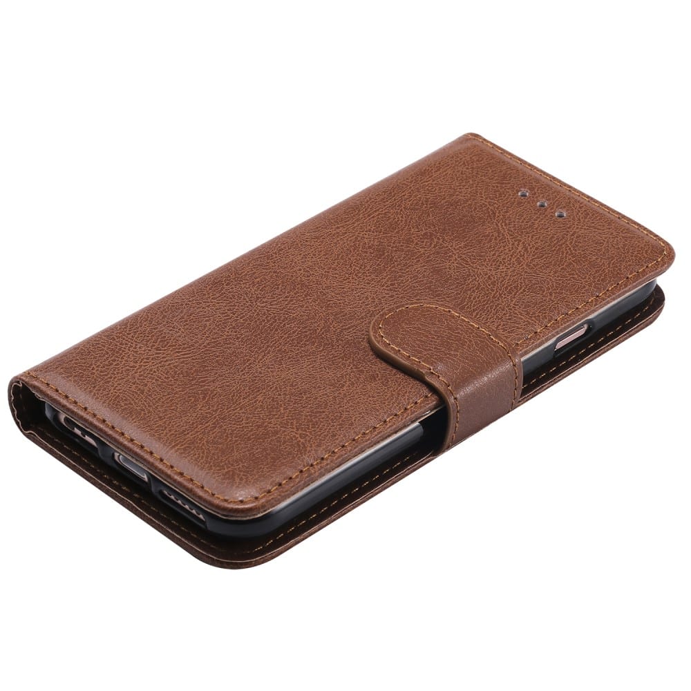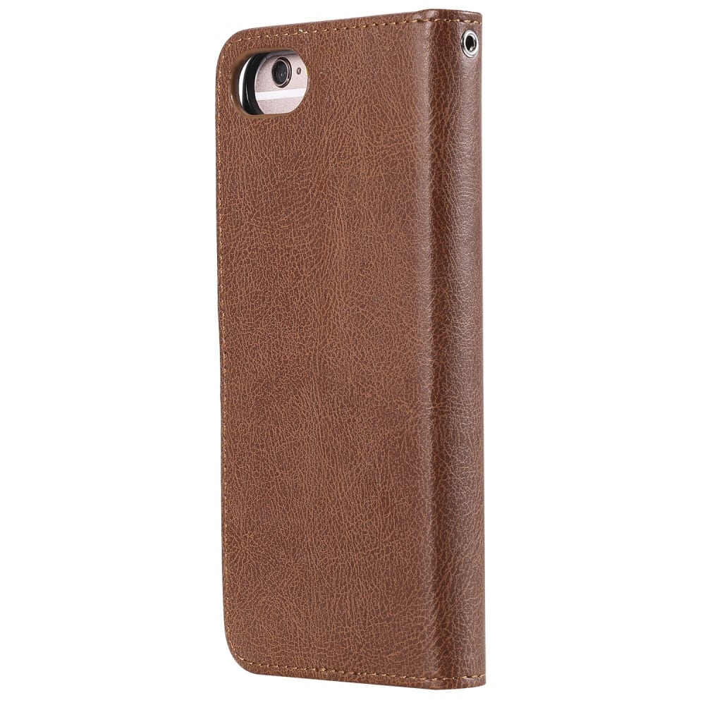 Et brunt aftageligt 2-i-1 mobilcover af PU læder med pung og håndrem til din iPhone 7 / 8 / SE (2020) giver dig den perfekte kombination af god berøringsflade, beskyttelse og et stilrent design.
