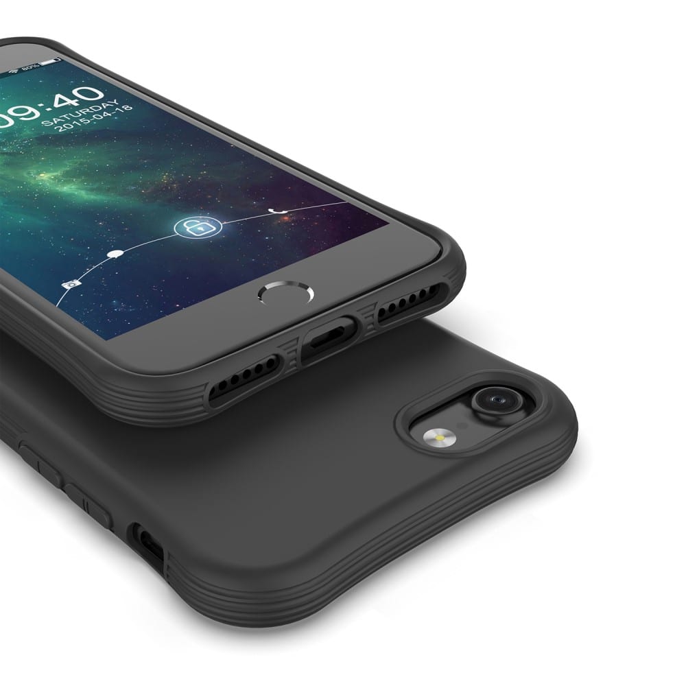Mobilcoveret er utroligt nemt at tilføje og fjerne fra telefonen efter behag, men det smarte ved dette design gør også, at det er nemt for dig at sætte oplader eller høretelefoner i telefonen, uden at det sorte mobilcover af miljøvenligt TPU plastik skal fjernes fra din iPhone 7 / 8 / SE (2020).