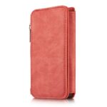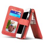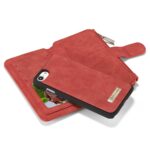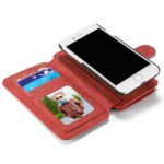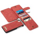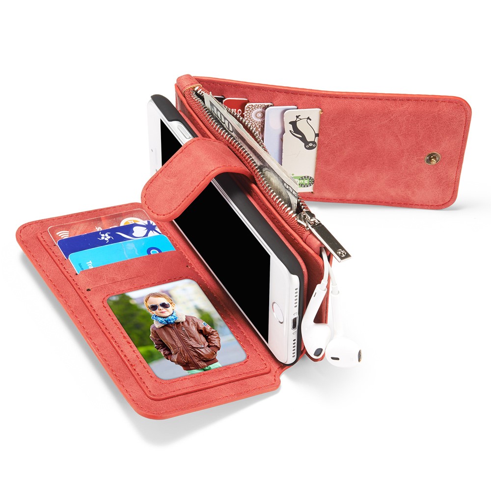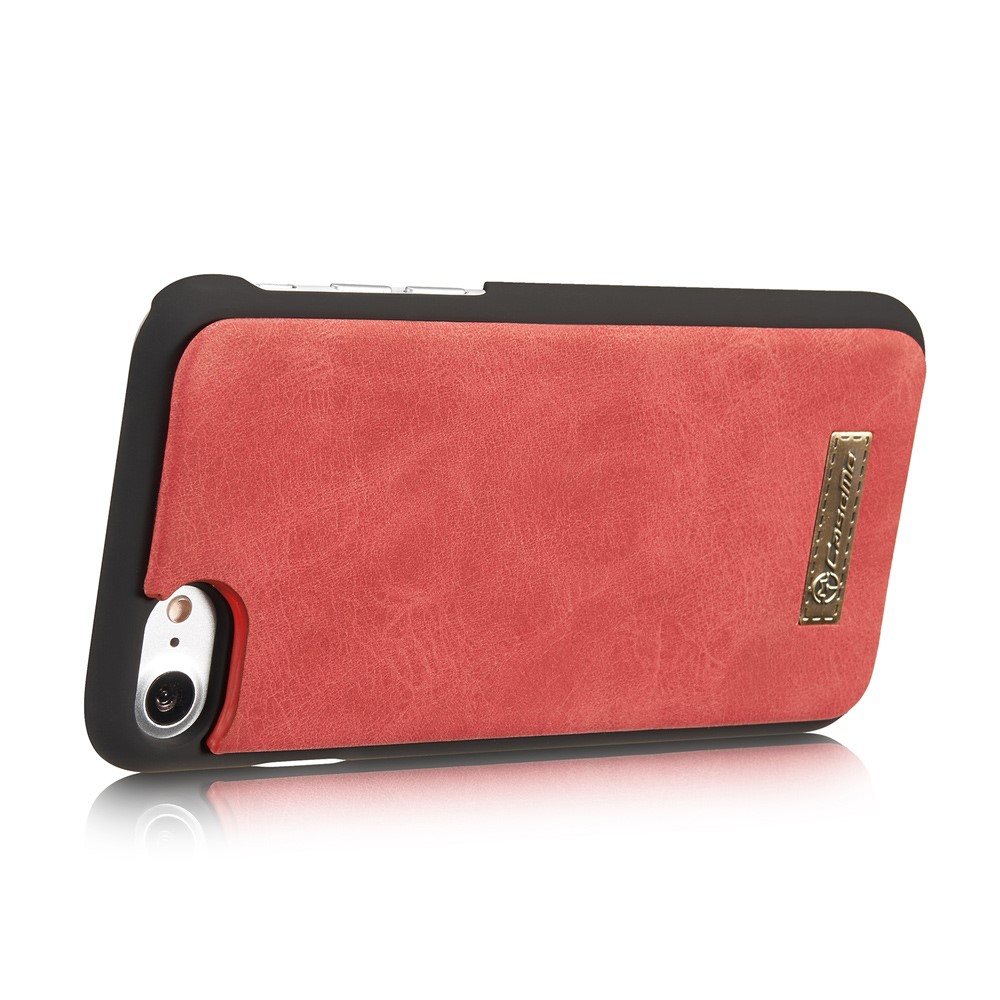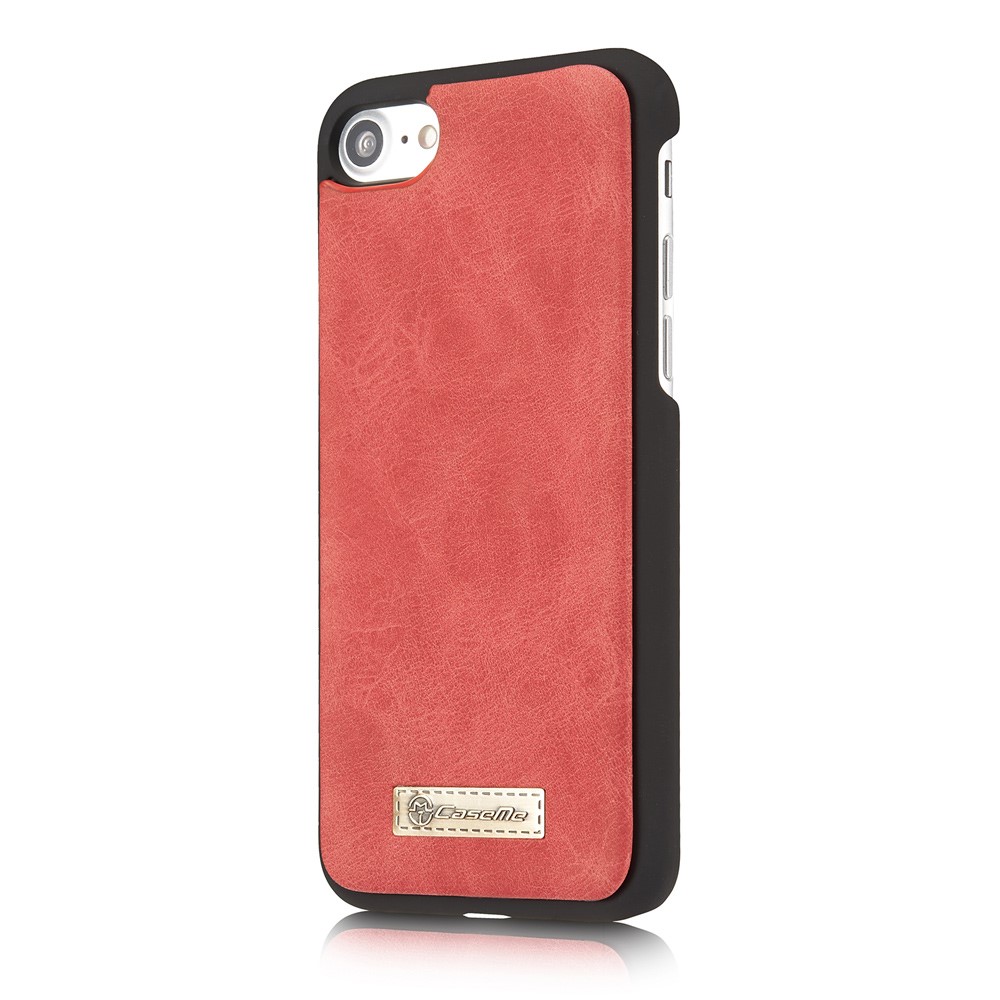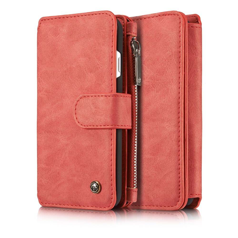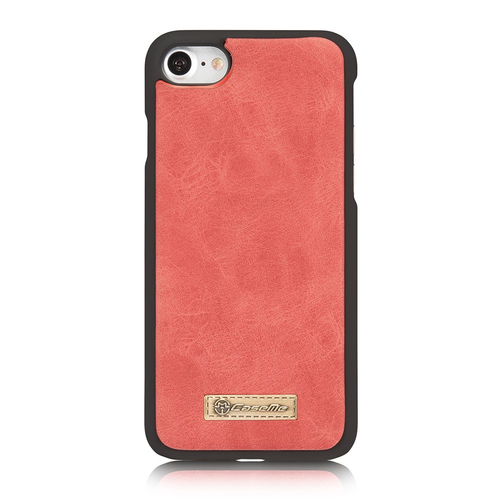 Et rødt, adskilleligt CASEME 2-i-1 mobilcover af PU læder med pung, lynlås og kortholdere til din iPhone 7 / 8 / SE (2020) giver dig den perfekte kombination af god berøringsflade, beskyttelse og et stilrent design.