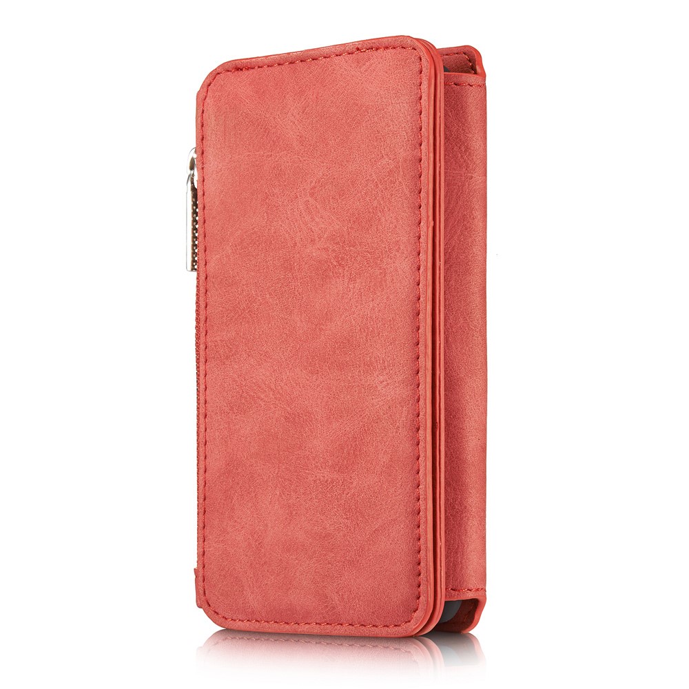 iPhone 7 / 8 / SE (2020) CASEME flipcover af læder med pung, lynlås og kortholdere – Rød