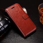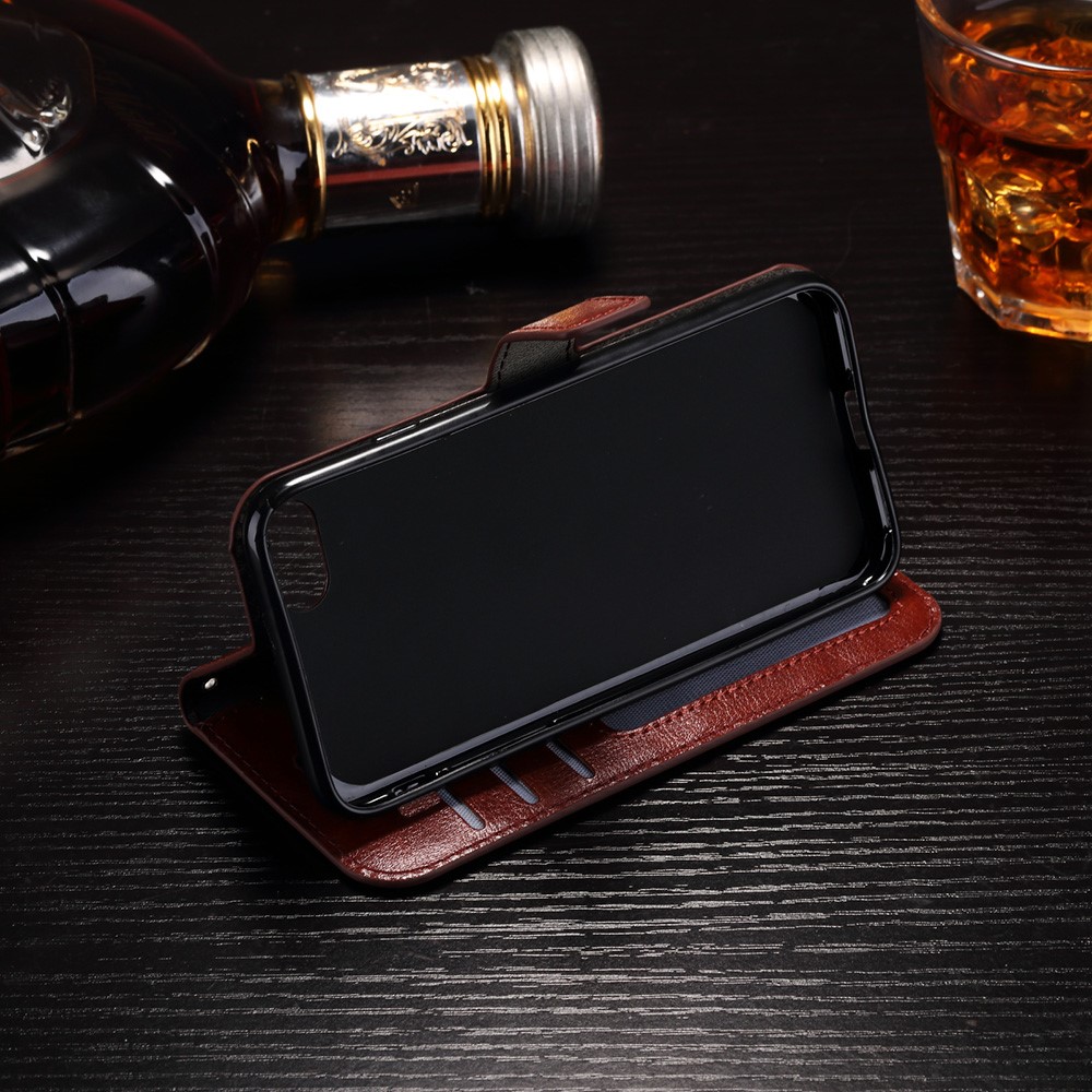 Et brunt Crazy Horse flipcover af PU læder giver dig den perfekte kombination af god berøringsflade, beskyttelse og et stilrent design til din iPhone 7 / 8 / SE (2020).