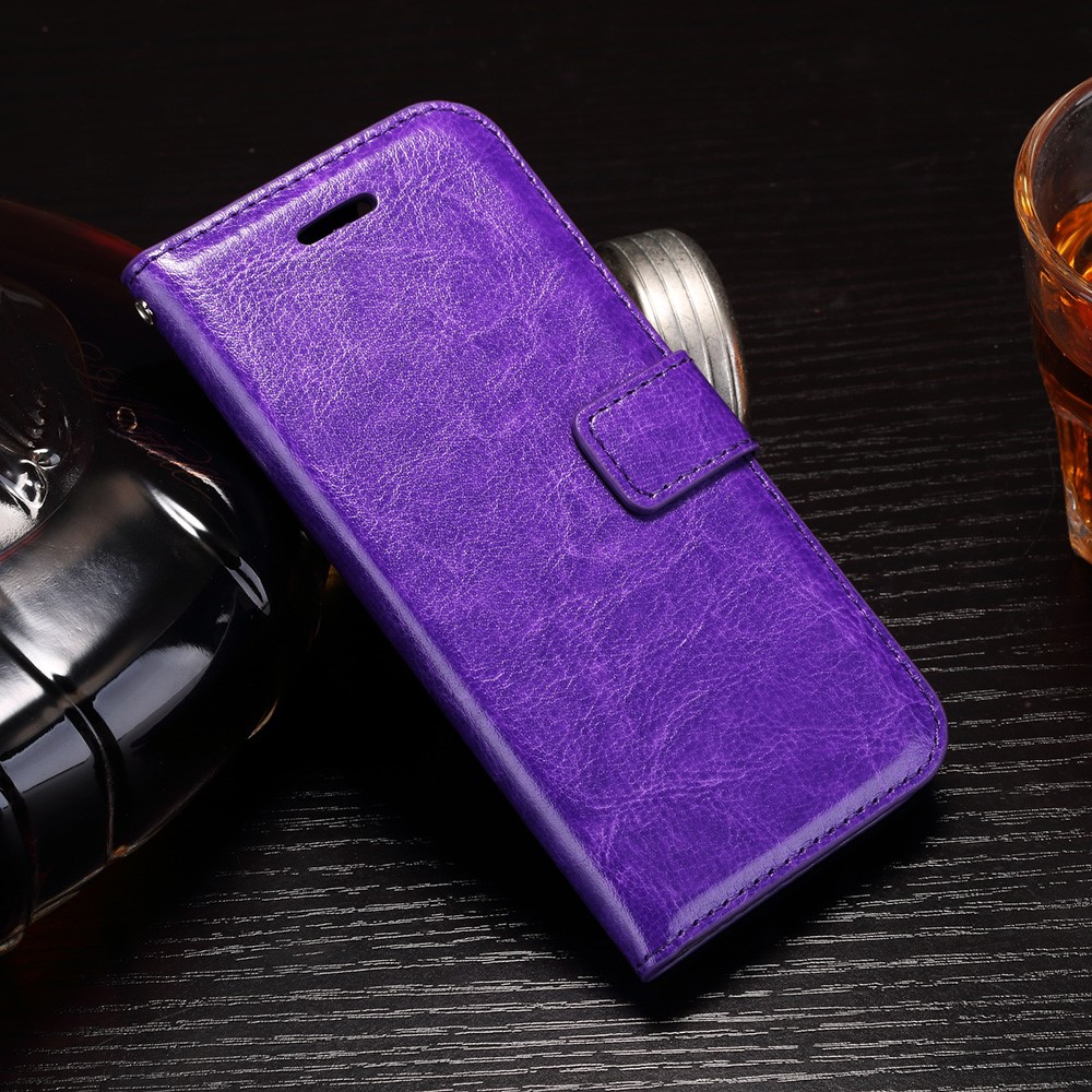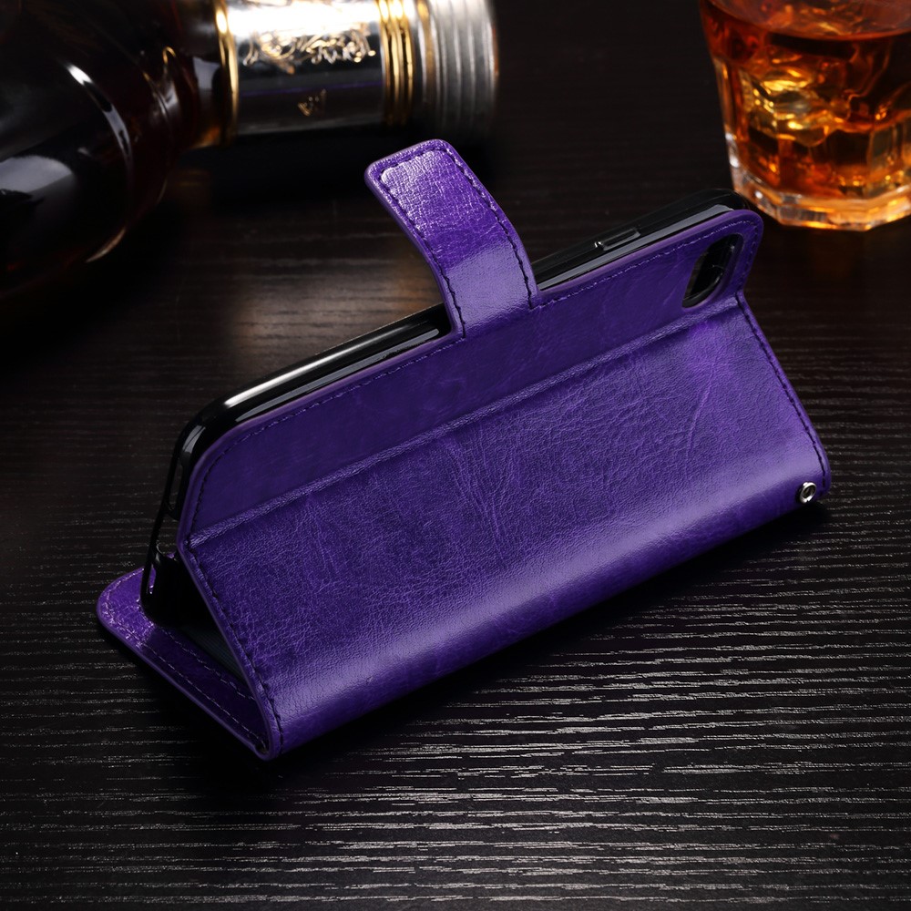 Et lilla Crazy Horse flipcover af PU læder giver dig den perfekte kombination af god berøringsflade, beskyttelse og et stilrent design til din iPhone 7 / 8 / SE (2020).