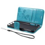iPhone 7 / 8 / SE (2020) flipcover med sommerfugleprint samt kortholder og håndrem – Blå