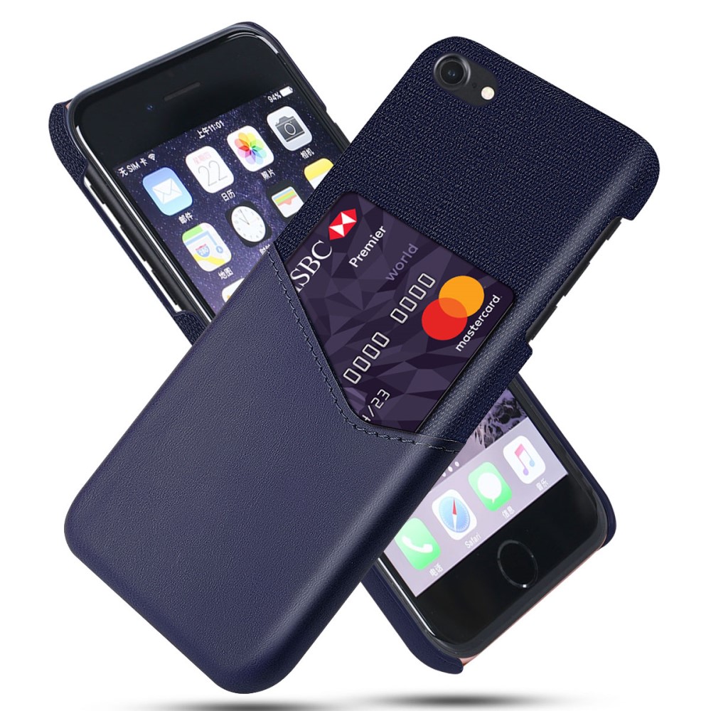 iPhone 7 / 8 / SE (2020) KSQ bagcover af læder og tekstil med kortholder – Blå
