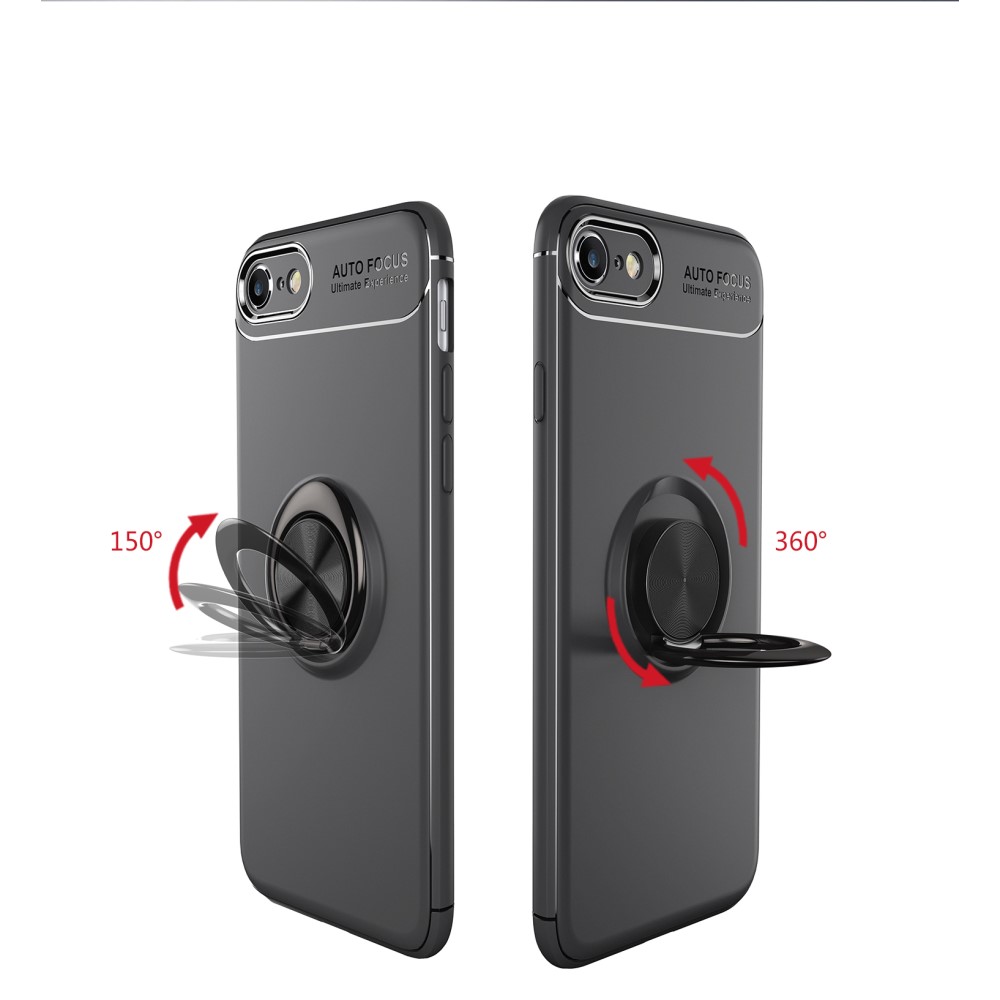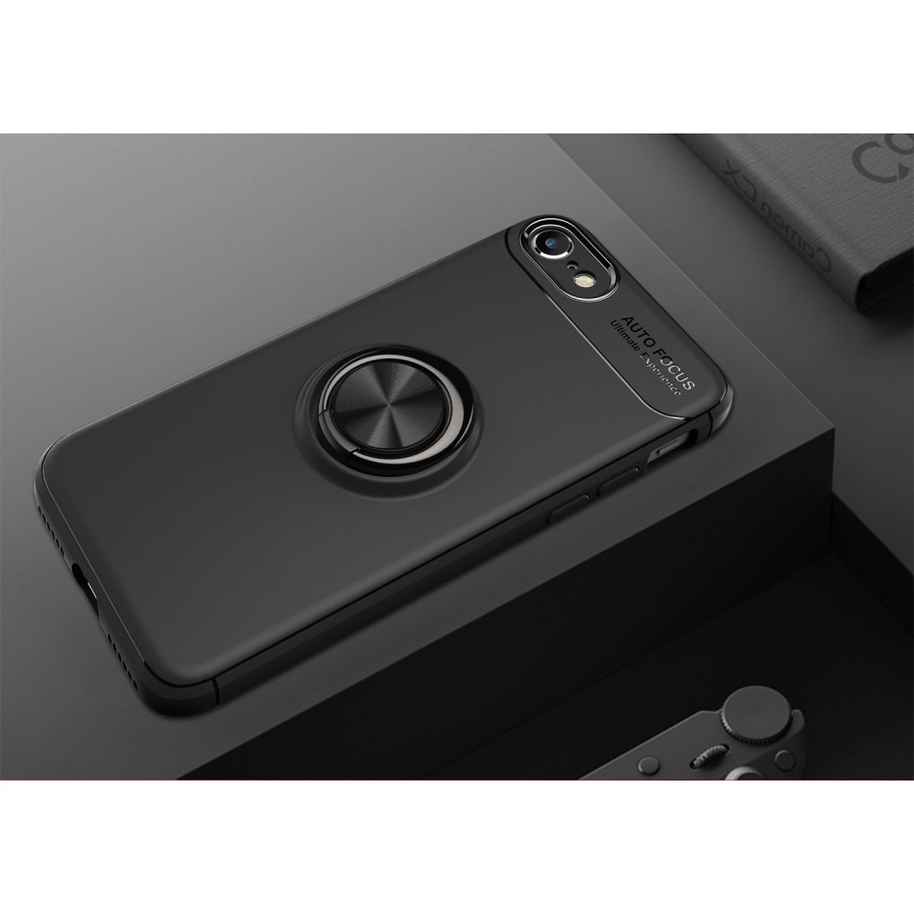 iPhone 7 / 8 / SE (2020) LENUO bagcover med magnetisk metal ring – Sort