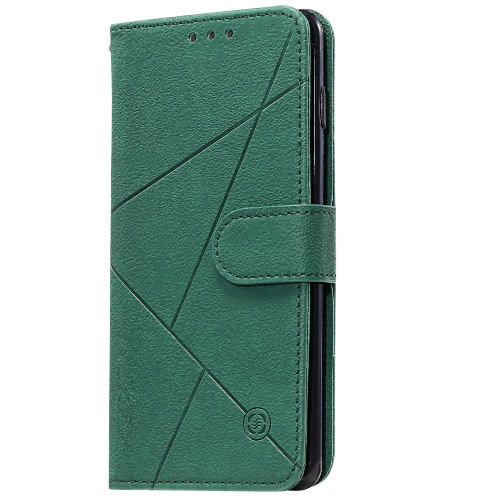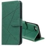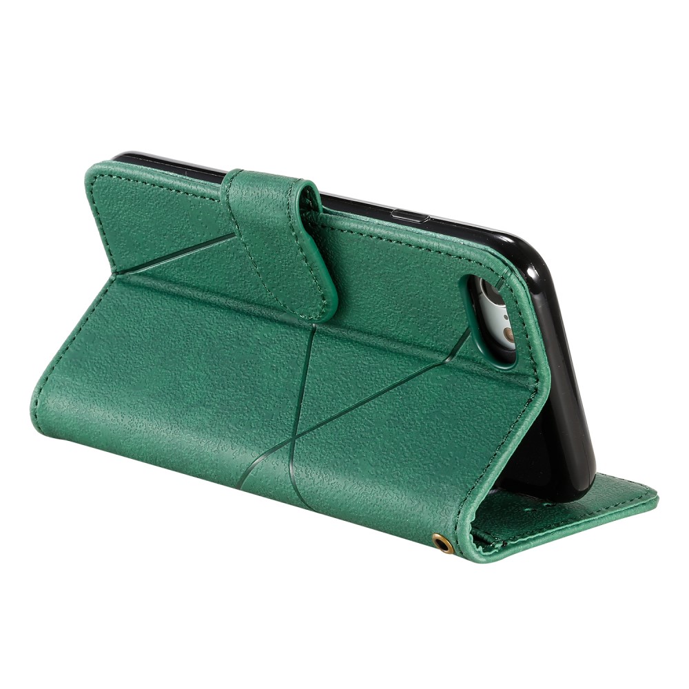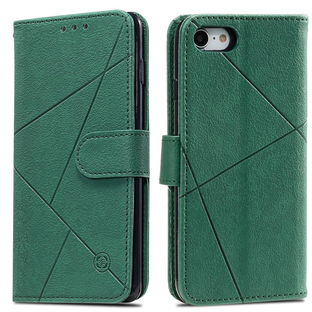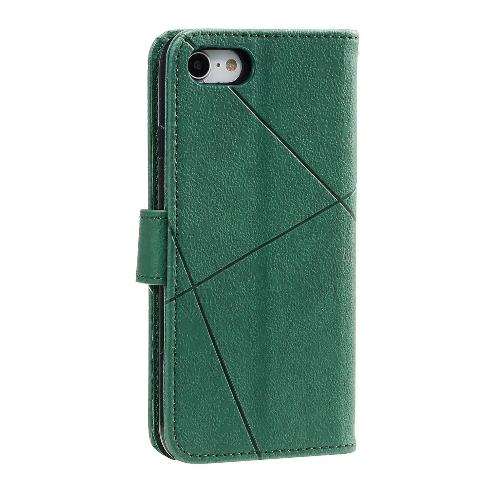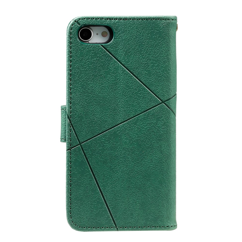 iPhone 7 / 8 / SE (2020) mobilcover af læder med geometrisk mønster og kortholder – Grøn