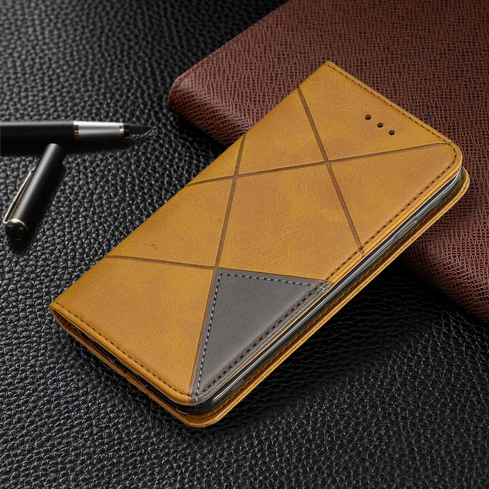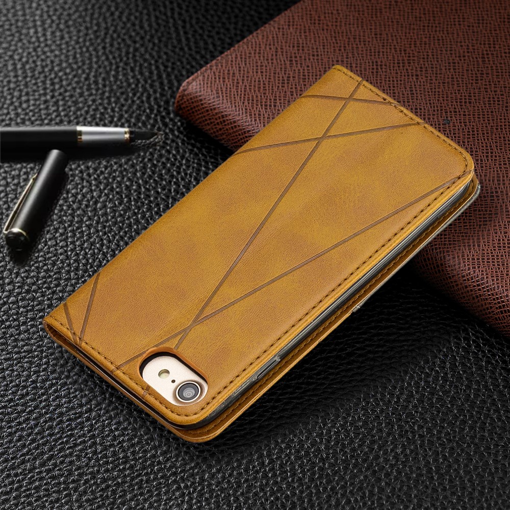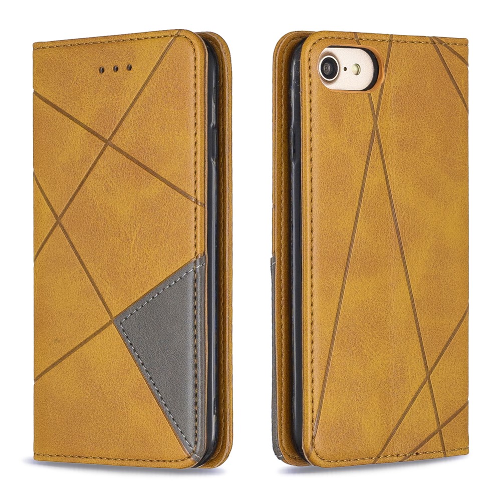 iPhone 7 / 8 / SE (2020) mobilcover af læder med geometrisk mønster og kortholder – Gul