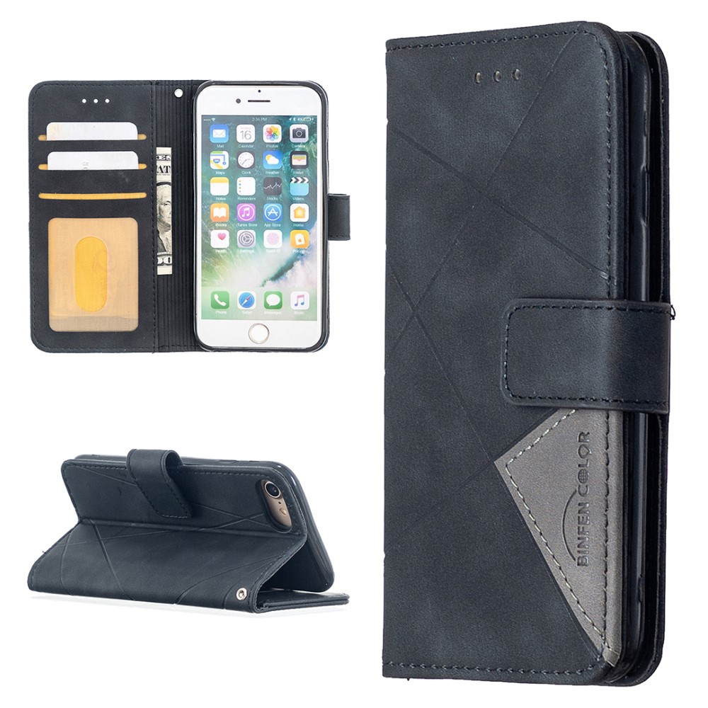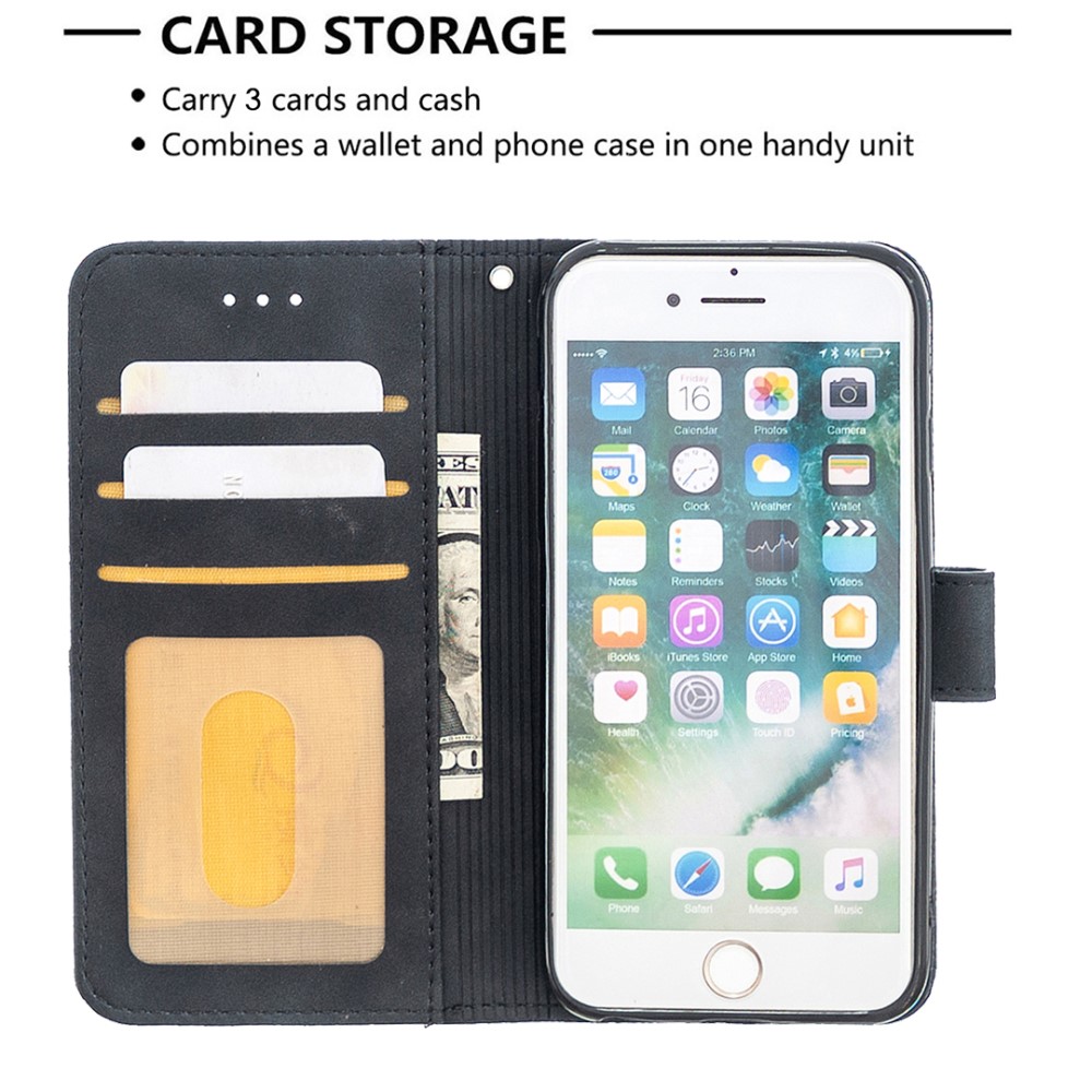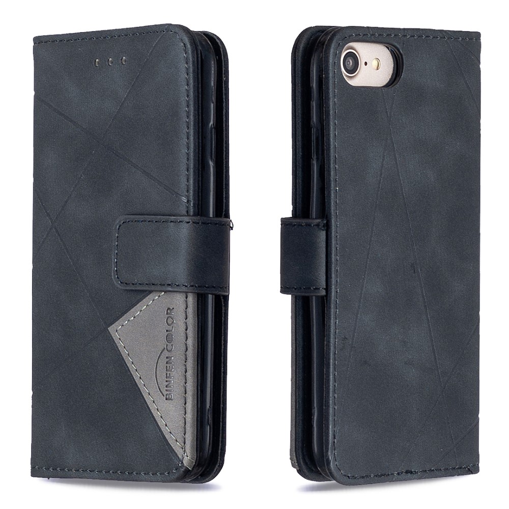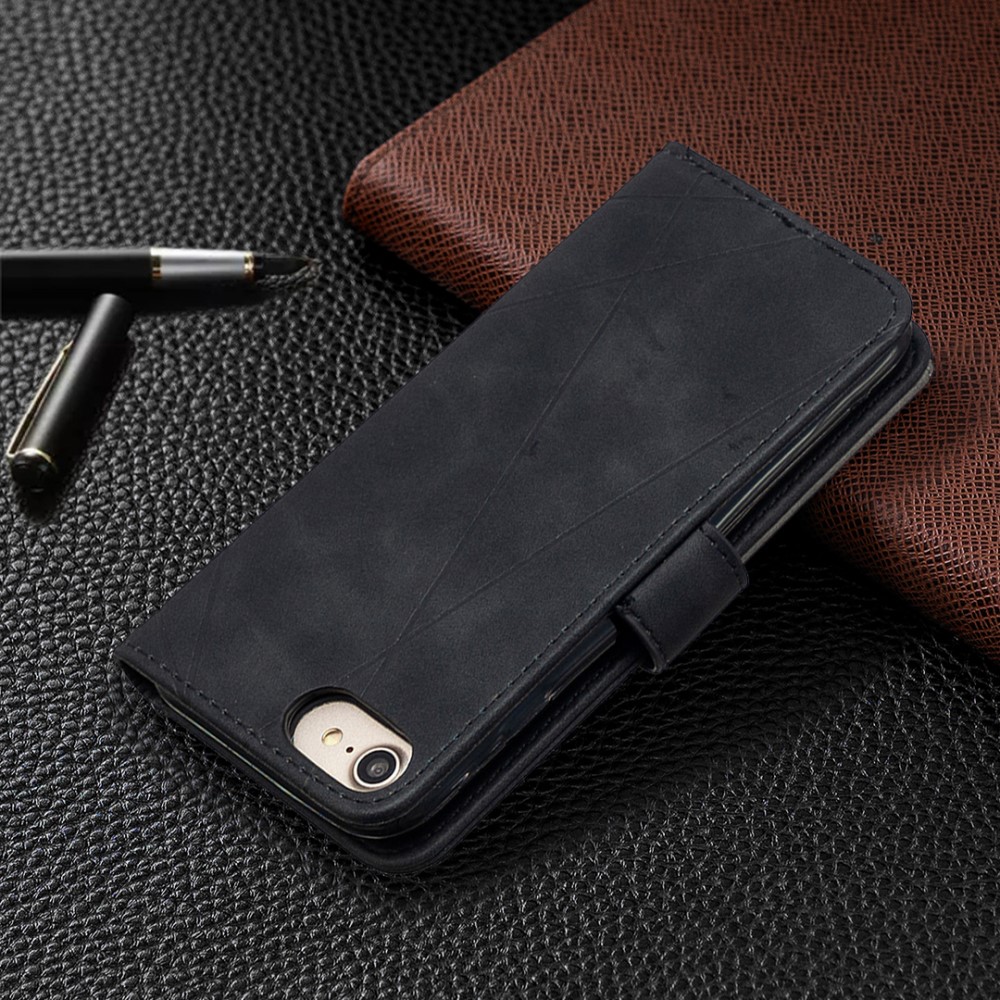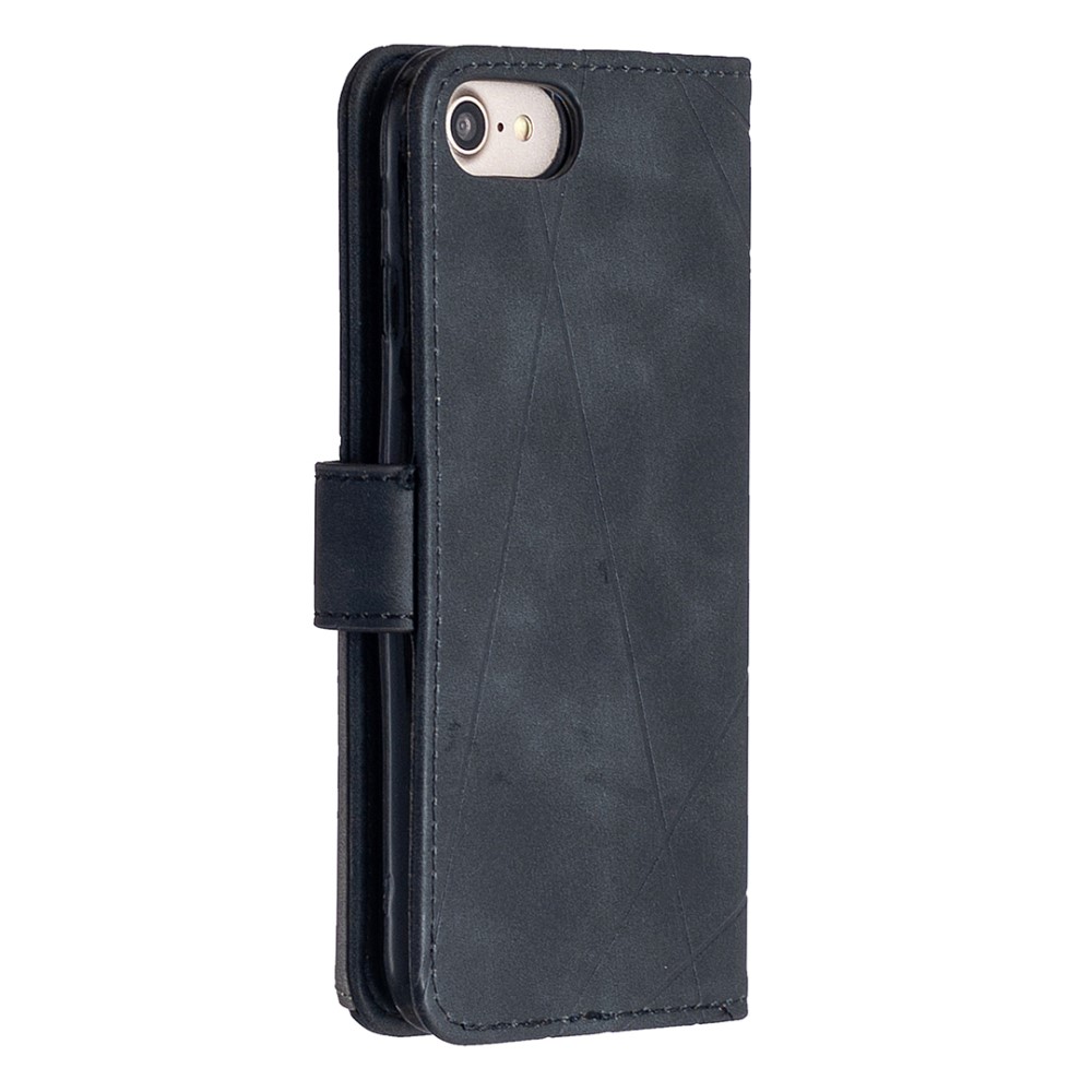 iPhone 7 / 8 / SE (2020) mobilcover af læder med geometrisk mønster og kortholder – Sort