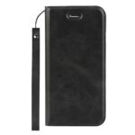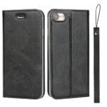 iPhone 7 / 8 / SE (2020) mobilcover af læder med kortholder og håndrem – Sort
