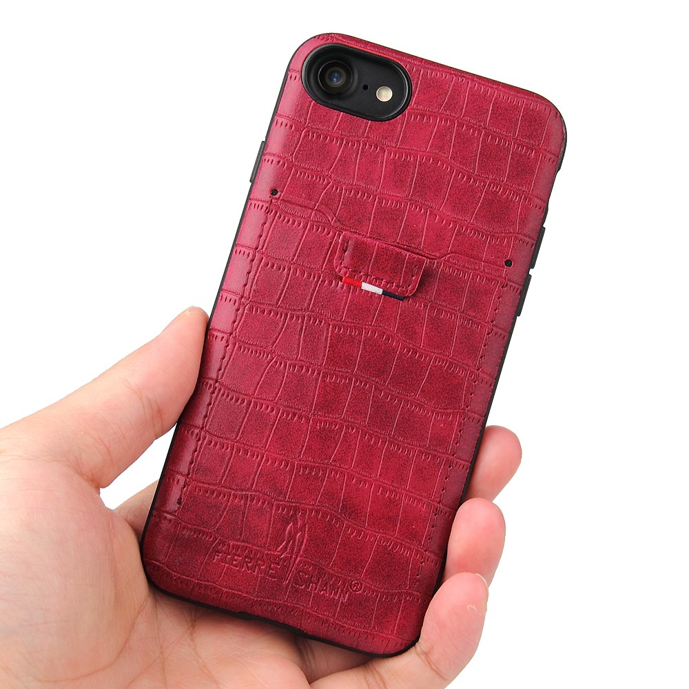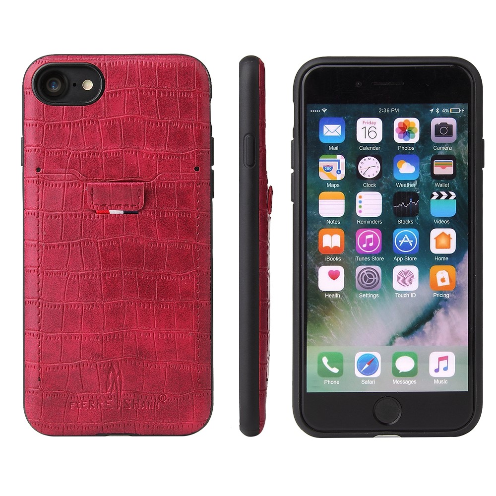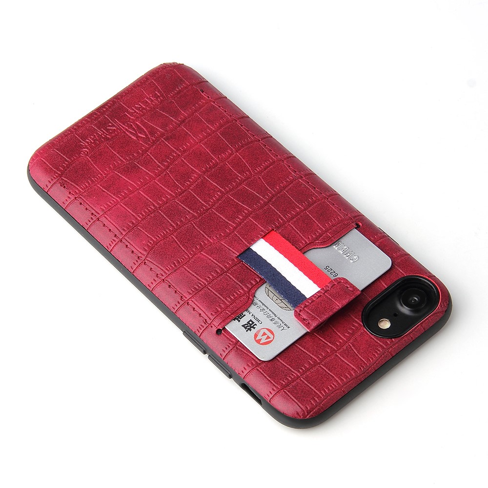 iPhone 7 / 8 / SE (2020) mobilcover af læder med krokodille tekstur og kortholder – Rosa
